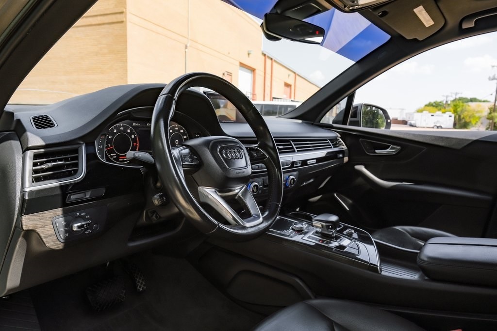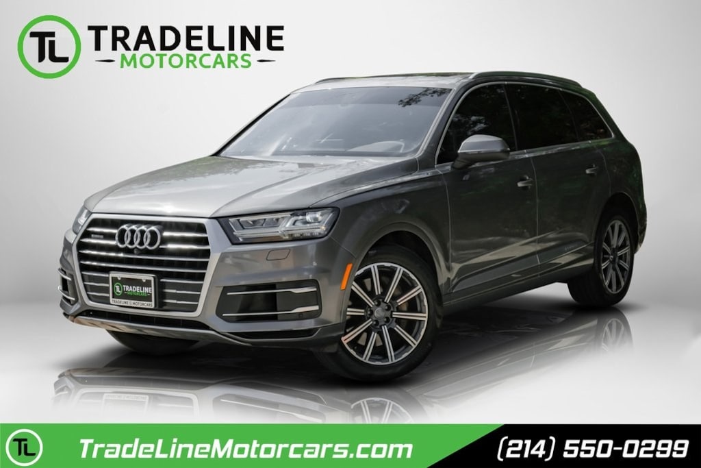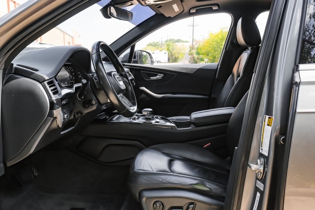 Graphite Gray Metallic 2017 Audi Q7 3.0T Premium Plus quattro, $61,025 ORIGINAL MSRP!!! quattro 8-Speed Automatic with Tiptronic 3.0L TFSI V6 DOHC ABS brakes, Alloy wheels, Compass, Electronic Stability Control, Front dual zone A/C, Heated door mirrors, Heated Front Bucket Seats, Heated front seats, Illuminated entry, Low tire pressure warning, Power Liftgate, Power moonroof, Remote keyless entry, Traction control. ABS brakes, Alloy wheels, Compass, Electronic Stability Control, Front dual zone A/C, Heated door mirrors, Heated Front Bucket Seats, Heated front seats, Illuminated entry, Low tire pressure warning, Power Liftgate, Power moonroof, Remote keyless entry, Traction control, 10 Speakers, 3.204 Axle Ratio, 3rd row seats: bench, 4-Wheel Disc Brakes, Air Conditioning, AM/FM radio: SiriusXM, Auto-dimming Rear-View mirror, Automatic temperature control, Brake assist, Bumpers: body-color, CD player, Delay-off headlights, Driver door bin, Driver vanity mirror, Driver's Seat Mounted Armrest, Dual front impact airbags, Dual front side impact airbags, Exterior Parking Camera Rear, Four wheel independent suspension, Front anti-roll bar, Front Bucket Seats, Front fog lights, Front reading lights, Fully automatic headlights, Garage door transmitter: HomeLink, High intensity discharge headlights: Xenon plus, Leather Seating Surfaces, Leather Shift Knob, Leather steering wheel, Memory seat, Occupant sensing airbag, Outside temperature display, Overhead airbag, Panic alarm, Passenger door bin, Passenger seat mounted armrest, Passenger vanity mirror, Power door mirrors, Power driver seat, Power passenger seat, Power steering, Power windows, Radio data system, Radio: MMI Radio Plus w/Audi Sound System, Rain sensing wipers, Rear air conditioning, Rear anti-roll bar, Rear fog lights, Rear reading lights, Rear seat center armrest, Rear window defroster, Rear window wiper, Roof rack: rails only, Security system, Speed control, Speed-sensing steering, Split folding rear seat, Spoiler, Steering wheel mounted audio controls, Tachometer, Telescoping steering wheel, Tilt steering wheel, Trip computer, Turn signal indicator mirrors, Variably intermittent wipers, and Wheels: 19" 5-V-Spoke Design.