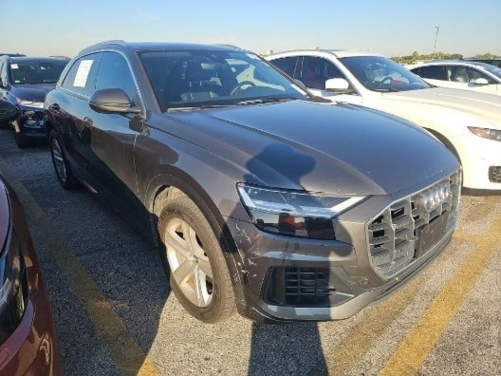 Priced below KBB Fair Purchase Price! Samurai Gray Metallic 2019 Audi Q8 3.0T Premium quattro quattro 8-Speed Automatic with Tiptronic 3.0L V6 Turbocharged DOHC 24V LEV3-ULEV125 335hp Audi Phone Box w/Wireless Charging, Audi Side Assist w/Pre Sense Rear, Cold Weather Package, Convenience Package, Heated Power Folding Auto-Dimming Exterior Mirrors, Heated Rear Seats, Heated Steering Wheel, Towing Package. Cold Weather Package (Heated Rear Seats and Heated Steering Wheel), Convenience Package (Audi Phone Box w/Wireless Charging, Audi Side Assist w/Pre Sense Rear, and Heated Power Folding Auto-Dimming Exterior Mirrors), Towing Package, 10 Speakers, 4-Wheel Disc Brakes, ABS brakes, Adaptive suspension, Air Conditioning, Alloy wheels, AM/FM radio: SiriusXM, Audi smartphone interface (Apple CarPlay/Android Auto), Auto-dimming Rear-View mirror, Automatic temperature control, Axle Ratio: TBA, Black Cloth Headliner, Brake assist, Bumpers: body-color, Compass, Delay-off headlights, Driver door bin, Driver vanity mirror, Dual front impact airbags, Dual front side impact airbags, Electronic Stability Control, Emergency communication system: Audi connect CARE, Exterior Parking Camera Rear, Four wheel independent suspension, Front & Rear Doors Audi Beam-Rings, Front anti-roll bar, Front Bucket Seats, Front Center Armrest, Front dual zone A/C, Front fog lights, Front reading lights, Fully automatic headlights, Garage door transmitter: HomeLink, Genuine wood door panel insert, Heated door mirrors, Heated Front Bucket Seats, Heated front seats, High-Gloss Gray Oak Wood Inlays, Illuminated entry, Leather Seating Surfaces, Leather Shift Knob, Leather steering wheel, Low tire pressure warning, Memory seat, Navigation System, Occupant sensing airbag, Outside temperature display, Overhead airbag, Overhead console, Panic alarm, Passenger door bin, Passenger vanity mirror, Power door mirrors, Power driver seat, Power Liftgate, Power moonroof, Power passenger seat, Power steering, Power windows, Radio data system, Radio: Audi MMI Navigation Plus w/Touch Response, Rain sensing wipers, Rear air conditioning, Rear anti-roll bar, Rear fog lights, Rear reading lights, Rear seat center armrest, Rear window defroster, Rear window wiper, Remote keyless entry, Roof rack: rails only, Security system, Speed control, Speed-sensing steering, Split folding rear seat, Spoiler, Steering wheel memory, Steering wheel mounted audio controls, Tachometer, Telescoping steering wheel, Tilt steering wheel, Traction control, Trip computer, Turn signal indicator mirrors, Variably intermittent wipers, and Wheels: 20" 5-Spoke.
