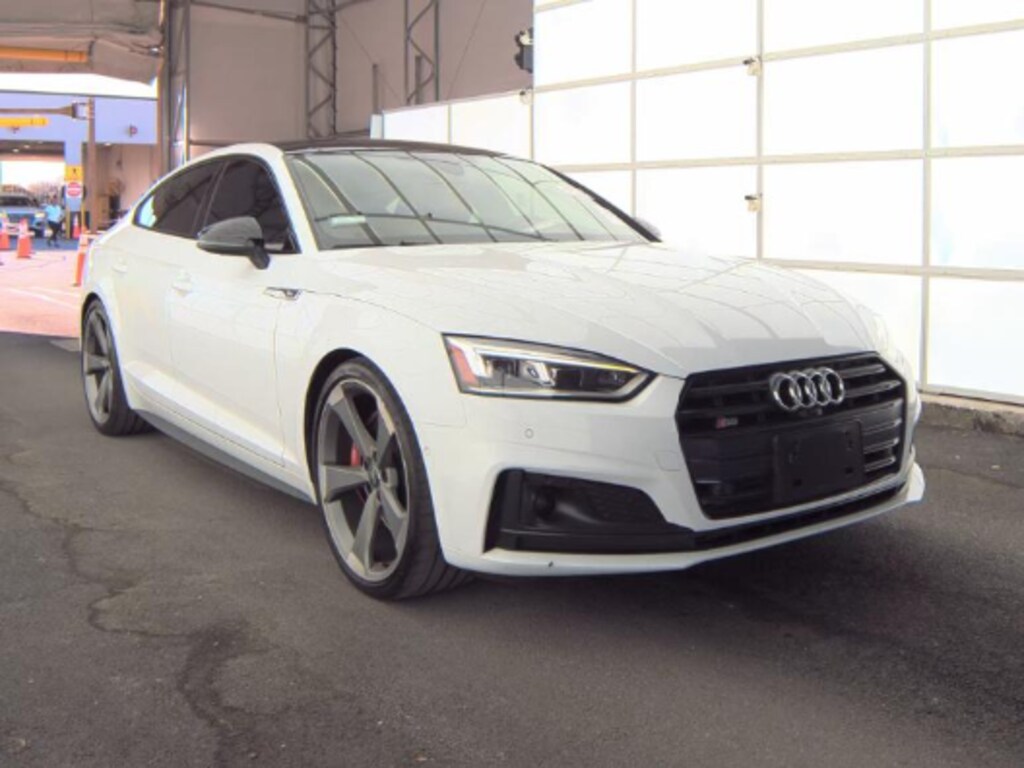 Ibis White 2019 Audi S5 Sportback Prestige quattro quattro 8-Speed Automatic with Tiptronic 3.0L TFSI Adaptive Cruise Control w/Traffic Jam Assist, Alarm System w/Motion Sensors, Audi Active Lane Assist, Audi Advanced Key, Audi MMI Navigation Plus w/MMI Touch, Audi pre sense rear, Audi Side Assist, Auto-Dimming Exterior Mirrors, Bang & Olufsen Sound System w/3D Sound, Black Optic Package, Convenience Package, Driver Seat Memory, Front & Rear Red Brake Calipers, Head-Up Display, High-Beam Assistant, High-Gloss Black Exterior Mirror Housings, Interior Lighting Package Plus, Park Steering Assist, Parking System Plus (Front/Rear Acoustic Sensors), Power Folding Exterior Mirrors, Prestige, Rear Seat USB Charge Ports, S Sport Package, SiriusXM All Access Service, Sport Adaptive Damping Suspension, Sport Rear Differential, Titanium Black Exterior Trim, Top View Camera System, Traffic Sign Recognition, Wheels: 20" Audi Sport 5-Arm-Rotor Design. Black Optic Package (High-Gloss Black Exterior Mirror Housings, Titanium Black Exterior Trim, and Wheels: 20" Audi Sport 5-Arm-Rotor Design), Convenience Package (Alarm System w/Motion Sensors, Audi Advanced Key, Audi pre sense rear, Audi Side Assist, Auto-Dimming Exterior Mirrors, Driver Seat Memory, and SiriusXM All Access Service), Interior Lighting Package Plus, Prestige (Adaptive Cruise Control w/Traffic Jam Assist, Audi Active Lane Assist, Audi MMI Navigation Plus w/MMI Touch, Bang & Olufsen Sound System w/3D Sound, Head-Up Display, High-Beam Assistant, Park Steering Assist, Parking System Plus (Front/Rear Acoustic Sensors), Power Folding Exterior Mirrors, Rear Seat USB Charge Ports, Top View Camera System, and Traffic Sign Recognition), S Sport Package (Front & Rear Red Brake Calipers, Sport Adaptive Damping Suspension, and Sport Rear Differential), 10 Speakers, 4-Wheel Disc Brakes, ABS brakes, Air Conditioning, Alloy wheels, AM/FM radio, Audi Cargo Box, Audi smartphone interface (Apple CarPlay/Android Auto), Auto High-beam Headlights, Auto-dimming Rear-View mirror, Automatic temperature control, Brake assist, Bumpers: body-color, Carbon Atlas Inlays, Compass, Delay-off headlights, Driver door bin, Driver vanity mirror, Dual front impact airbags, Dual front side impact airbags, Electronic Stability Control, Emergency communication system: Audi connect CARE, Exterior Parking Camera Rear, Four wheel independent suspension, Front anti-roll bar, Front Bucket Seats, Front Center Armrest, Front dual zone A/C, Front fog lights, Front reading lights, Garage door transmitter: HomeLink, Heated door mirrors, Heated Front S Sport Seats, Heated front seats, Illuminated entry, Knee airbag, Leather Shift Knob, Leather steering wheel, Leather/Alcantara Seating Surfaces, Low tire pressure warning, Occupant sensing airbag, Outside temperature display, Overhead airbag, Overhead console, Panic alarm, Passenger door bin, Passenger vanity mirror, Power door mirrors, Power driver seat, Power Liftgate, Power moonroof, Power passenger seat, Power steering, Power windows, Radio data system, Radio: Audi Sound System, Rain sensing wipers, Rear air conditioning, Rear anti-roll bar, Rear reading lights, Rear seat center armrest, Rear window defroster, Remote keyless entry, Rings Audi Beam, Speed control, Speed-sensing steering, Speed-Sensitive Wipers, Split folding rear seat, Spoiler, Sport steering wheel, Steering wheel mounted audio controls, Tachometer, Telescoping steering wheel, Tilt steering wheel, Traction control, Trip computer, Turn signal indicator mirrors, Variably intermittent wipers, and Wheels: 18" x 8.5" 5-Double-Spoke-Star Design.