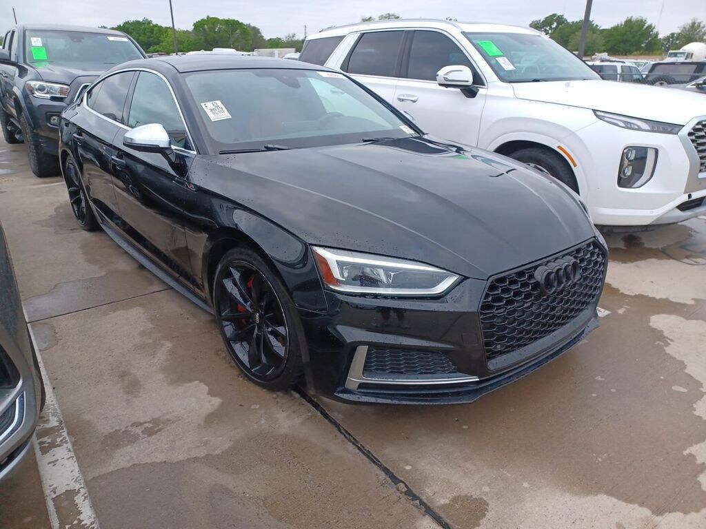 Brilliant Black 2019 Audi S5 Sportback Premium Plus quattro quattro 8-Speed Automatic with Tiptronic 3.0L TFSI Alarm System w/Motion Sensors, Audi Advanced Key, Audi MMI Navigation Plus w/MMI Touch, Audi pre sense rear, Audi Side Assist, Auto-Dimming Exterior Mirrors, Convenience Package, Driver Seat Memory, Front & Rear Red Brake Calipers, Parking System Plus (Front/Rear Acoustic Sensors), Power Folding Exterior Mirrors, Premium Plus, Rear Seat USB Charge Ports, S Sport Package, SiriusXM All Access Service, Sport Adaptive Damping Suspension, Sport Rear Differential. Convenience Package (Alarm System w/Motion Sensors, Audi Advanced Key, Audi pre sense rear, Audi Side Assist, Auto-Dimming Exterior Mirrors, Driver Seat Memory, and SiriusXM All Access Service), Premium Plus (Audi MMI Navigation Plus w/MMI Touch, Parking System Plus (Front/Rear Acoustic Sensors), Power Folding Exterior Mirrors, and Rear Seat USB Charge Ports), S Sport Package (Front & Rear Red Brake Calipers, Sport Adaptive Damping Suspension, and Sport Rear Differential), 10 Speakers, 4-Wheel Disc Brakes, ABS brakes, Air Conditioning, Alloy wheels, AM/FM radio, Audi smartphone interface (Apple CarPlay/Android Auto), Auto High-beam Headlights, Auto-dimming Rear-View mirror, Automatic temperature control, Bang & Olufsen Sound System w/3D Sound, Brake assist, Bumpers: body-color, Carbon Atlas Inlays, Compass, Delay-off headlights, Driver door bin, Driver vanity mirror, Dual front impact airbags, Dual front side impact airbags, Electronic Stability Control, Emergency communication system: Audi connect CARE, Exterior Parking Camera Rear, Four wheel independent suspension, Front anti-roll bar, Front Bucket Seats, Front Center Armrest, Front dual zone A/C, Front fog lights, Front reading lights, Garage door transmitter: HomeLink, Heated door mirrors, Heated Front S Sport Seats, Heated front seats, Illuminated entry, Knee airbag, Leather Shift Knob, Leather steering wheel, Leather/Alcantara Seating Surfaces, Low tire pressure warning, Occupant sensing airbag, Outside temperature display, Overhead airbag, Overhead console, Panic alarm, Passenger door bin, Passenger vanity mirror, Power door mirrors, Power driver seat, Power Liftgate, Power moonroof, Power passenger seat, Power steering, Power windows, Radio data system, Radio: Audi Sound System, Rain sensing wipers, Rear air conditioning, Rear anti-roll bar, Rear reading lights, Rear seat center armrest, Rear window defroster, Remote keyless entry, Rings Audi Beam, Speed control, Speed-sensing steering, Speed-Sensitive Wipers, Split folding rear seat, Spoiler, Sport steering wheel, Steering wheel mounted audio controls, Tachometer, Telescoping steering wheel, Tilt steering wheel, Traction control, Trip computer, Turn signal indicator mirrors, Variably intermittent wipers, Wheels: 18" x 8.5" 5-Double-Spoke-Star Design, and Wheels: 19" x 8.5" 5-Spoke-Cavo Design.