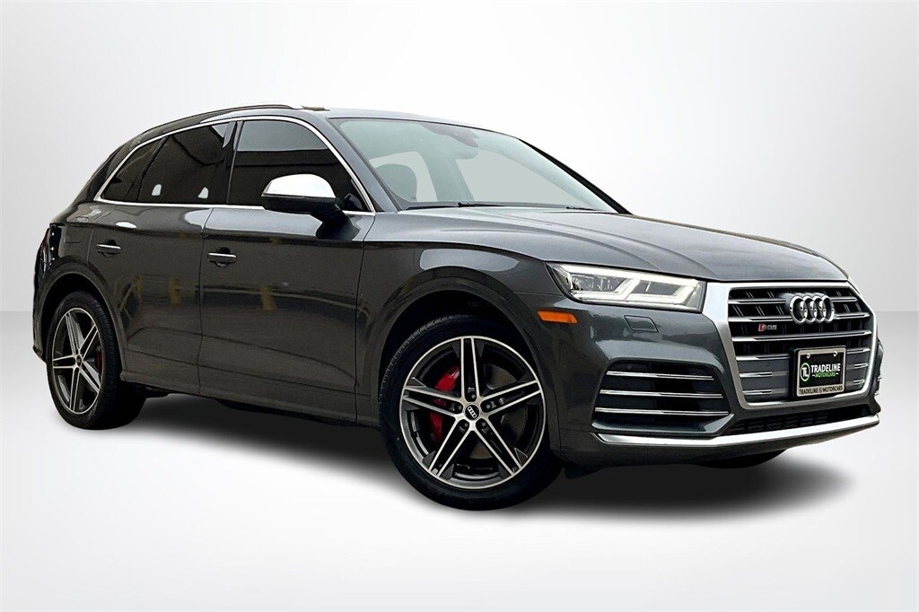 Daytona Gray Pearl Effect 2020 Audi SQ5 3.0T Premium Plus quattro quattro 8-Speed Automatic with Tiptronic 3.0L TFSI Audi Advanced Key, Audi Connect PRIME & PLUS, Audi Phone Box, Audi Pre-Sense Rear, Audi Side Assist, Audi Virtual Cockpit, Auto-Dimming Power Folding Exterior Mirrors, Convenience Package, Convenience Plus Package, Driver Seat Memory, Fine Nappa Leather Interior, Fine Nappa Leather Seating Surfaces, Leatherette Covered Center Console, Panoramic Sunroof, Parking System Plus (Front/Rear Acoustic Sensors), Premium Plus Package, Radio: MMI Navigation Plus w/MMI Touch, Red Brake Calipers, S Sport Package, SiriusXM All Access Service, Sport Adaptive Air Suspension, Sport Rear Differential, USB Charge Ports for Rear Seats. Convenience Package (Audi Advanced Key, Audi Pre-Sense Rear, Audi Side Assist, Auto-Dimming Power Folding Exterior Mirrors, Driver Seat Memory, and SiriusXM All Access Service), Convenience Plus Package (Audi Phone Box and Parking System Plus (Front/Rear Acoustic Sensors)), Fine Nappa Leather Interior (Fine Nappa Leather Seating Surfaces), Premium Plus Package (Audi Connect PRIME & PLUS, Audi Virtual Cockpit, Leatherette Covered Center Console, Panoramic Sunroof, Radio: MMI Navigation Plus w/MMI Touch, and USB Charge Ports for Rear Seats), S Sport Package (Red Brake Calipers, Sport Adaptive Air Suspension, and Sport Rear Differential), 10 Speakers, 3.204 Axle Ratio, 4-Wheel Disc Brakes, ABS brakes, Adaptive suspension, Air Conditioning, All Weather Floor Mats, Alloy wheels, AM/FM radio, AM/FM Stereo, Audi S Beam - Front Doors Only, Audi smartphone interface (Apple CarPlay/Android Auto), Auto High-beam Headlights, Auto-dimming Rear-View mirror, Automatic temperature control, Bang & Olufsen 3D Sound System, Black Privacy Trunk Cover, Brake assist, Bumpers: body-color, Carbon Atlas Inlays, Cargo Mat, Compass, Delay-off headlights, Driver door bin, Driver vanity mirror, Dual front impact airbags, Dual front side impact airbags, Electronic Stability Control, Emergency communication system: Audi connect CARE, Exterior Parking Camera Rear, Four wheel independent suspension, Front anti-roll bar, Front Bucket Seats, Front Center Armrest, Trip computer, Turn signal indicator mirrors, Variably intermittent wipers, and Wheels: 20" x 8" 5-Double-Spoke Star Design.