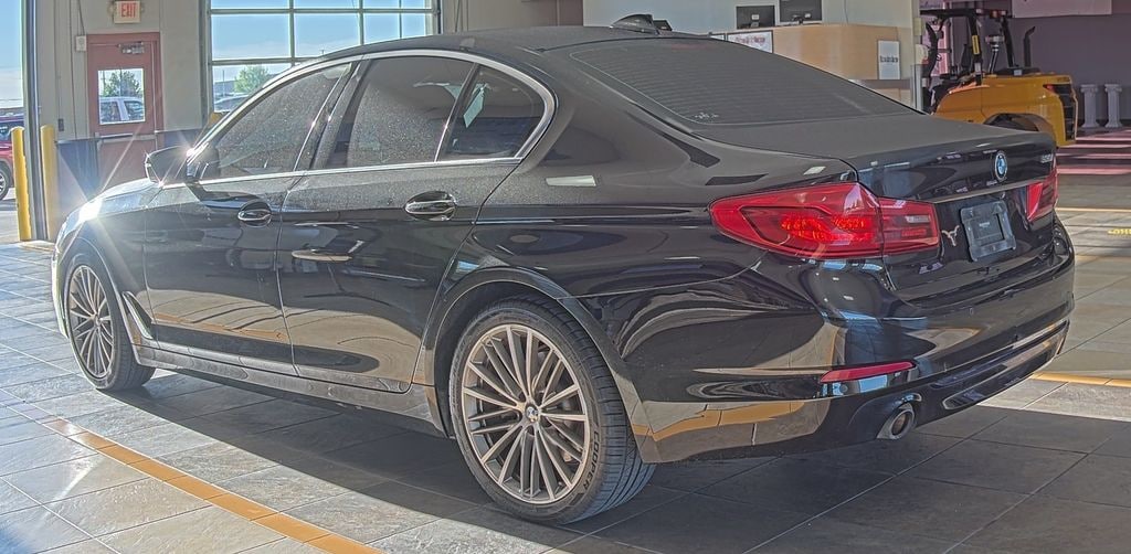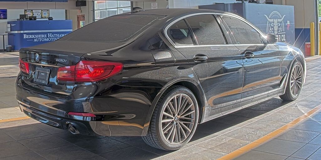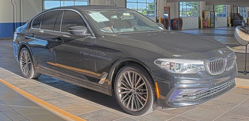 Jet Black 2020 BMW 5 Series 530i RWD 8-Speed Automatic 2.0L 4-Cylinder Black w/Perforated Nappa Leather Upholstery, Convenience Package, Heated Front Seats, Power Tailgate, SiriusXM Satellite Radio. Convenience Package (Heated Front Seats, Power Tailgate, and SiriusXM Satellite Radio), Black w/Perforated Nappa Leather Upholstery, 12 Speakers, 4-Wheel Disc Brakes, ABS brakes, Air Conditioning, Alloy wheels, AM/FM radio, Apple CarPlay Compatibility, Apple CarPlay Compatibility w/1 Year Trial, Auto tilt-away steering wheel, Auto-dimming door mirrors, Auto-dimming Rear-View mirror, Automatic temperature control, BMW Assist eCall, BMW TeleServices, Brake assist, Bumpers: body-color, Burl Walnut Wood Trim, Delay-off headlights, Driver door bin, Driver vanity mirror, Dual front impact airbags, Dual front side impact airbags, Electronic Stability Control, Emergency communication system: BMW Assist eCall, Enhanced USB & Bluetooth, Exterior Parking Camera Rear, Four wheel independent suspension, Front anti-roll bar, Front Bucket Seats, Front Center Armrest, Front dual zone A/C, Front reading lights, Fully automatic headlights, Garage door transmitter, Genuine wood console insert, Genuine wood dashboard insert, Genuine wood door panel insert, Heated door mirrors, Hi-Fi Sound System, Illuminated entry, Increased Top Speed Limiter, Leather Shift Knob, Leather steering wheel, Live Cockpit Pro w/Navi, Low tire pressure warning, Lumbar Support, Memory seat, Navigation System, Occupant sensing airbag, Outside temperature display, Overhead airbag, Panic alarm, Passenger door bin, Passenger vanity mirror, Power door mirrors, Power driver seat, Power Front Seats, Power moonroof, Power passenger seat, Power steering, Power windows, Radio data system, Radio: AM/FM Audio System, Rain sensing wipers, Rear anti-roll bar, Rear reading lights, Rear seat center armrest, Rear window defroster, Remote keyless entry, Security system, SensaTec Upholstery, Speed control, Speed-sensing steering, Speed-Sensitive Wipers, Split folding rear seat, Sport Seats, Sport steering wheel, Steering wheel memory, Steering wheel mounted audio controls, Tachometer, Telescoping steering wheel, Tilt steering wheel, Traction control, Trip computer, Turn signal indicator mirrors, Variably intermittent wipers, Wheels: 18" x 8" Double-Spoke (Style 634), Wheels: 19" x 8" Fr & 19" x 9" Rr V-Spoke, and WiFi Hotspot.
