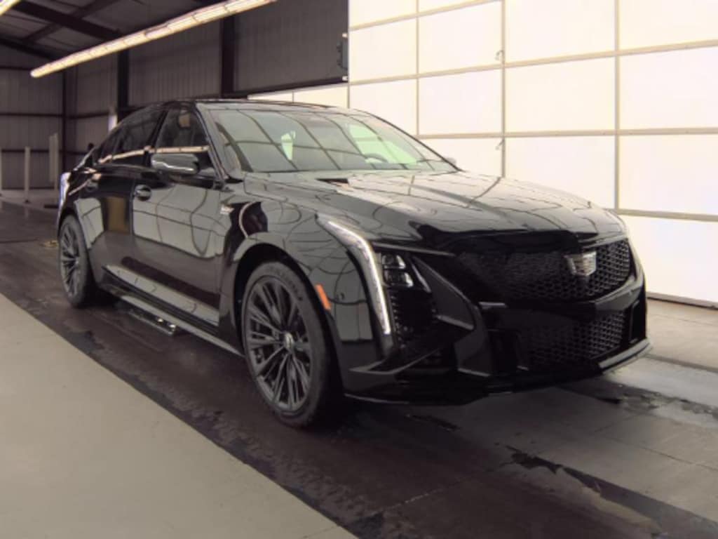 CARFAX One-Owner. Black Raven 2025 Cadillac CT5 V-Series RWD 10-Speed Automatic 6.2L V8 Supercharged 3.73 Rear Axle Ratio, Air Quality Indicator Sensor, Brembo 4-Wheel Antilock High-Performance Brakes, Driver Attention Assist, Electronic Cruise Control w/Set & Resume Speed, High Performance Steering Wheel, Inside Rear-View Auto-Dimming Mirror, Leather-Wrapped Thick Rim Steering Wheel, Parking Package, Pollutant/Odor/Fine Dust Air Filter, Preferred Equipment Group 1SV, Rear Camera Mirror, Super Cruise, Super Cruise 1 Package, Super Cruise Leather-Wrapped Steering Wheel. Parking Package (Air Quality Indicator Sensor, Pollutant/Odor/Fine Dust Air Filter, and Rear Camera Mirror), Preferred Equipment Group 1SV (3.73 Rear Axle Ratio, Brembo 4-Wheel Antilock High-Performance Brakes, Electronic Cruise Control w/Set & Resume Speed, High Performance Steering Wheel, Inside Rear-View Auto-Dimming Mirror, and Leather-Wrapped Thick Rim Steering Wheel), Super Cruise 1 Package (Driver Attention Assist, Super Cruise, and Super Cruise Leather-Wrapped Steering Wheel), 16 Speakers, 4-Wheel Disc Brakes, 8-Way Power Driver Seat Adjuster, 8-Way Power Front Passenger Seat Adjuster, ABS brakes, Adaptive Cruise Control, Adaptive Remote Start, Adaptive suspension, Air Conditioning, AKG Premium 16-Speaker System, Alloy wheels, AM/FM radio: SiriusXM with 360L, Apple CarPlay/Android Auto, Auto-dimming door mirrors, Auto-dimming Rear-View mirror, Automatic temperature control, Automatic Vehicle Hold Brake, Black Wheel Locks (LPO), Black Wheel Lug Nuts (LPO), Blind Zone Steering Assist, Brake assist, Buckle to Drive, Bumpers: body-color, Compass, Delay-off headlights, Driver 4-Way Power Lumbar Seat Adjuster, Driver door bin, Driver Power Lumbar Massage Seat, Driver vanity mirror, Dual front impact airbags, Dual front side impact airbags, Electronic Precision Shift, Electronic Stability Control, Emergency communication system: OnStar and Cadillac connected services capable, Enhanced Automatic Emergency Braking, Enhanced Automatic Parking Assist, Exterior Parking Camera Rear, Four wheel independent suspension, Front 2-Way Adjustable Head Restraints, Front anti-roll bar, Front Bucket Seats, Front Center Armrest, Front dual zone A/C, Front License Plate Bracket, Front Passenger 4-Way Power Lumbar Seat Adjuster, Front Passenger Power Lumbar Massage Seat, Front Pedestrian & Bicyclist Braking, Front reading lights, Fully automatic headlights, Garage door transmitter, Hands-Free Decklid Release, Heads-Up Display, Heated door mirrors, Heated Driver & Front Passenger Seats, Heated front seats, Heated steering wheel, Illuminated entry, Intersection Automatic Emergency Braking, Knee airbag, Leather Seating Surfaces w/Mini-Perforated Inserts, Leather steering wheel, Low tire pressure warning, Memory seat, Navigation system: Google Automotive Services Capable, Occupant sensing airbag, Outside temperature display, Overhead airbag, Overhead console, Panic alarm, Passenger door bin, Passenger vanity mirror, Performance Front Bucket Seats, Power door mirrors, Power driver seat, Power passenger seat, Power steering, Power windows, Radio data system, Radio: Google Built-In Infotainment Experience, Rain sensing wipers, Rear anti-roll bar, Rear Cross Traffic Braking, Rear reading lights, Rear seat center armrest, Rear window defroster, Remote keyless entry, Reverse Automatic Braking, Security system, Side Bicyclist Alert, SiriusXM w/360L Trial Subscription, Speed control, Speed-sensing steering, Split folding rear seat, Spoiler, Sport steering wheel, Steering wheel memory, Steering Wheel Mounted Alloy Paddle Shift Controls, Steering wheel mounted audio controls, Tachometer, Telescoping steering wheel, Tilt steering wheel, Tire Inflator Kit, Traction control, Trip computer, Turn signal indicator mirrors, UltraView Dual Pane Sunroof, Variably intermittent wipers, Ventilated Driver & Front Passenger Seats, Ventilated front seats, Voltmeter, Wheels: 19" Alum Alloy w/Polished/Dk Andro