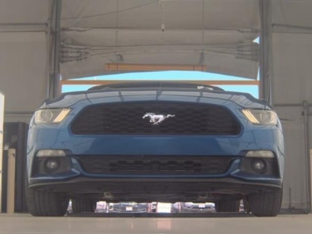 Priced below KBB Fair Purchase Price! Lightning Blue 2017 Ford Mustang EcoBoost RWD 6-Speed Automatic with Select-Shift EcoBoost 2.3L I4 GTDi DOHC Turbocharged VCT Equipment Group 100A. Equipment Group 100A, 4-Wheel Disc Brakes, 6 Speakers, ABS brakes, Air Conditioning, Alloy wheels, AM/FM radio, AM/FM Stereo w/Single CD Player, Auto-dimming Rear-View mirror, Brake assist, Bumpers: body-color, CD player, Cloth Sport Bucket Seats, Compass, Delay-off headlights, Driver door bin, Driver vanity mirror, Dual front impact airbags, Dual front side impact airbags, Electronic Stability Control, Emergency communication system: 911 Assist, Exterior Parking Camera Rear, Four wheel independent suspension, Front anti-roll bar, Front Bucket Seats, Front Center Armrest, Front reading lights, Fully automatic headlights, High-Intensity Discharge Headlights, Illuminated entry, Knee airbag, Leather Shift Knob, Low tire pressure warning, Occupant sensing airbag, Outside temperature display, Overhead airbag, Overhead console, Panic alarm, Passenger door bin, Passenger vanity mirror, Power door mirrors, Power driver seat, Power passenger seat, Power steering, Power windows, Radio data system, Rear anti-roll bar, Rear window defroster, Remote keyless entry, Security system, Speed control, Speed-sensing steering, Speed-Sensitive Wipers, Split folding rear seat, Spoiler, Steering wheel mounted audio controls, SYNC Communications & Entertainment System, Tachometer, Telescoping steering wheel, Tilt steering wheel, Traction control, Trip computer, Variably intermittent wipers, Voltmeter, Wheels: 18" x 8" Foundry Black-Painted Aluminum, and Wheels: 18" x 8" Magnetic Painted/Machined.