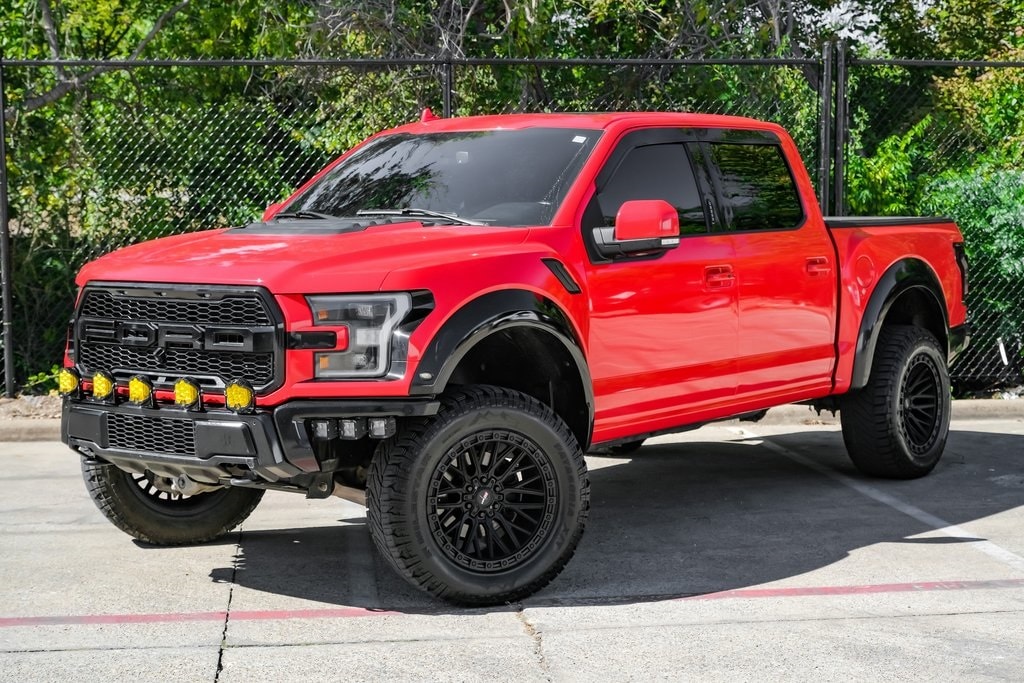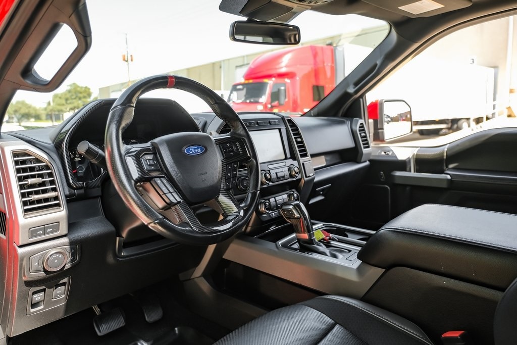 Race Red 2019 Ford F-150 Raptor 4WD 10-Speed Automatic 3.5L V6 EcoBoost 4WD, 10-Way Power Driver & Passenger Seats, 360 Degree Camera, 4.10 Front Axle w/Torsen Differential, 8" Productivity Screen, Adaptive Cruise Control w/Stop-and-Go, Advanced Security Pack, Ambient Lighting - Ice Blue Color Only, BLIS Blind Spot Information System, Dual-Zone Electronic Automatic Temperature Control, Equipment Group 802A Luxury, GVWR: 7,050 lbs Payload Package, Heated & Ventilated Leather 40/Console/40 Front Seats, Heated Steering Wheel, Inflatable Rear Safety Belts, Integrated Trailer Brake Controller, Intelligent Access w/Push-Button Start, Lane Keeping System w/Alert & Assist, LED Box Lighting, LED Sideview Mirror Spotlights, Memory System (Seat, Pedal, Exterior Mirror), Power Glass Heated Sideview Mirrors, Power Tilt/Telescoping Steering Column w/Memory, Power-Adjustable Pedals, Power-Sliding Rear Window, Pro Trailer Backup Assist, Radio: B&O Sound System by Bang & Olufsen, Rain-Sensing Windshield Wipers, Raptor Carbon Fiber Package, Raptor Exterior Graphics Package, Raptor Hood Graphics Package, Raptor Technology Package, Remote Start System w/Remote Tailgate Release, SYNC 3, Tailgate Applique FORD, Unique High Gloss Black Carbon Fiber Shift Knob, Universal Garage Door Opener, Voice-Activated Touchscreen Navigation. Equipment Group 802A Luxury (10-Way Power Driver & Passenger Seats, 360 Degree Camera, 4.10 Front Axle w/Torsen Differential, 8" Productivity Screen, Advanced Security Pack, Ambient Lighting - Ice Blue Color Only, BLIS Blind Spot Information System, Dual-Zone Electronic Automatic Temperature Control, Heated & Ventilated Leather 40/Console/40 Front Seats, Heated Steering Wheel, Inflatable Rear Safety Belts, Integrated Trailer Brake Controller, Intelligent Access w/Push-Button Start, LED Box Lighting, LED Sideview Mirror Spotlights, Memory System (Seat, Pedal, Exterior Mirror), Power Glass Heated Sideview Mirrors, Power Tilt/Telescoping Steering Column w/Memory, Power-Adjustable Pedals, Power-Sliding Rear Window, Pro Trailer Backup Assist, Radio: B&O Sound System by Bang & Olufsen, Remote Start System w/Remote Tailgate Release, SYNC 3,