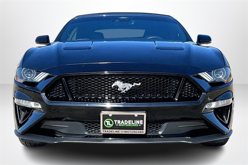 Priced below KBB Fair Purchase Price! CARFAX One-Owner. Shadow Black 2021 Ford Mustang GT Premium RWD 10-Speed Automatic 5.0L V8 Ti-VCT 12" LCD Digital Instrument Cluster w/MyColor, Adaptive Cruise Control, Equipment Group 401A, Ford Safe & Smart Package, Heated Steering Wheel, Integrated Turn Signals, Leather-Trimmed Bucket Seats w/Color Accents, Memory Driver Seat, Mirrors & Ambient Lighting, Voice-Activated Touch-Screen Navigation System. Equipment Group 401A (12" LCD Digital Instrument Cluster w/MyColor, Heated Steering Wheel, Integrated Turn Signals, Leather-Trimmed Bucket Seats w/Color Accents, and Memory Driver Seat, Mirrors & Ambient Lighting), Ford Safe & Smart Package (Adaptive Cruise Control and Voice-Activated Touch-Screen Navigation System), 19" x 8.5" Polished Aluminum Wheels, 3.55 Limited Slip Rear Axle, 4-Wheel Disc Brakes, 9 Speakers, ABS brakes, Active Valve Performance Exhaust, Air Conditioning, Alloy wheels, AM/FM radio: SiriusXM, AM/FM Stereo, Auto High-beam Headlights, Auto-dimming Rear-View mirror, Automatic temperature control, Brake assist, Bumpers: body-color, Climate Controlled Heated/Cooled Front Seats, Compass, Convertible roof lining, Delay-off headlights, Driver door bin, Driver vanity mirror, Dual front impact airbags, Dual front side impact airbags, Electronic Stability Control, Emergency communication system: 911 Assist, Exterior Parking Camera Rear, Four wheel independent suspension, Front anti-roll bar, Front Bucket Seats, Front Center Armrest, Front dual zone A/C, Front fog lights, Front reading lights, Fully automatic headlights, Garage door transmitter, Glass rear window, Heated door mirrors, Heated front seats, Illuminated entry, Knee airbag, Leather Shift Knob, Leather-Trimmed Bucket Seats, Low tire pressure warning, Occupant sensing airbag, Outside temperature display, Overhead console, Panic alarm, Passenger door bin, Passenger vanity mirror, Power convertible roof, Power door mirrors, Power driver seat, Power passenger seat, Power steering, Power windows, Radio data system, Rain sensing wipers, Rear anti-roll bar, Rear window defroster, Remote keyless entry, Security system, SiriusXM Radio, Speed control, Speed-sensing steering, Speed-Sensitive Wipers, Spoiler, Steering wheel mounted audio controls, SYNC 3 Communications & Entertainment System, Tachometer, Telescoping steering wheel, Tilt steering wheel, Traction control, Trip computer, Variably intermittent wipers, Ventilated front seats, Voltmeter, and Wheels: 18" x 8" Machined-Face Aluminum.