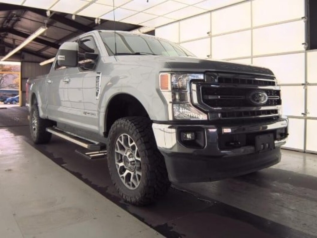 Iconic Silver Metallic 2022 Ford F-250SD Lariat 4WD 10-Speed Automatic Power Stroke 6.7L V8 DI 32V OHV Turbodiesel 4WD, FX4 Off-Road Package, GVWR: 10,000 lb Payload Package, Hill Descent Control, Off-Road Specifically Tuned Shock Absorbers, Order Code 608A, Unique FX4 Off-Road Box Decal. FX4 Off-Road Package (Hill Descent Control, Off-Road Specifically Tuned Shock Absorbers, and Unique FX4 Off-Road Box Decal), GVWR: 10,000 lb Payload Package, Order Code 608A, 4WD, 10 Speakers, 3.73 Axle Ratio, 4-Wheel Disc Brakes, 6" Angular Bright Polished Step Bar, ABS brakes, Adjustable pedals, Air Conditioning, Alloy wheels, AM/FM radio: SiriusXM with 360L, Auto High-beam Headlights, Auto-dimming Rear-View mirror, Automatic temperature control, Brake assist, Bumpers: chrome, Compass, Delay-off headlights, Driver door bin, Driver vanity mirror, Dual front impact airbags, Dual front side impact airbags, Electronic Stability Control, Electronic-Locking w/3.31 Axle Ratio, Emergency communication system: SYNC 4 911 Assist, Exterior Parking Camera Rear, Flow-Through Console, Front anti-roll bar, Front Bucket Seats, Front Center Armrest, Front dual zone A/C, Front fog lights, Front Leather Seating Surfaces 40/Console/40, Front reading lights, Fully automatic headlights, Heated door mirrors, Illuminated entry, Leather steering wheel, Low tire pressure warning, Navigation system: Connected Navigation, Outside temperature display, Overhead airbag, Overhead console, Panic alarm, Passenger door bin, Passenger vanity mirror, Power door mirrors, Power driver seat, Power passenger seat, Power steering, Power windows, PowerScope Trailer Tow Mirrors w/Heat, Radio data system, Radio: B&O Sound System by Bang & Olufsen, Rear Parking Sensors, Rear reading lights, Rear seat center armrest, Rear step bumper, Rear window defroster, Remote keyless entry, Security system, SiriusXM Radio w/360L, Speed control, Split folding rear seat, Steering wheel mounted audio controls, SYNC 4 w/Enhanced Voice Recognition, Tachometer, Telescoping steering wheel, Tilt steering wheel, Traction control, Trip computer, Turn signal indicator mirrors, Variably intermittent wipers, Wheels: 18" Bright Machined Cast Aluminum, and Wheels: 20" Bright Machined Cast Aluminum.