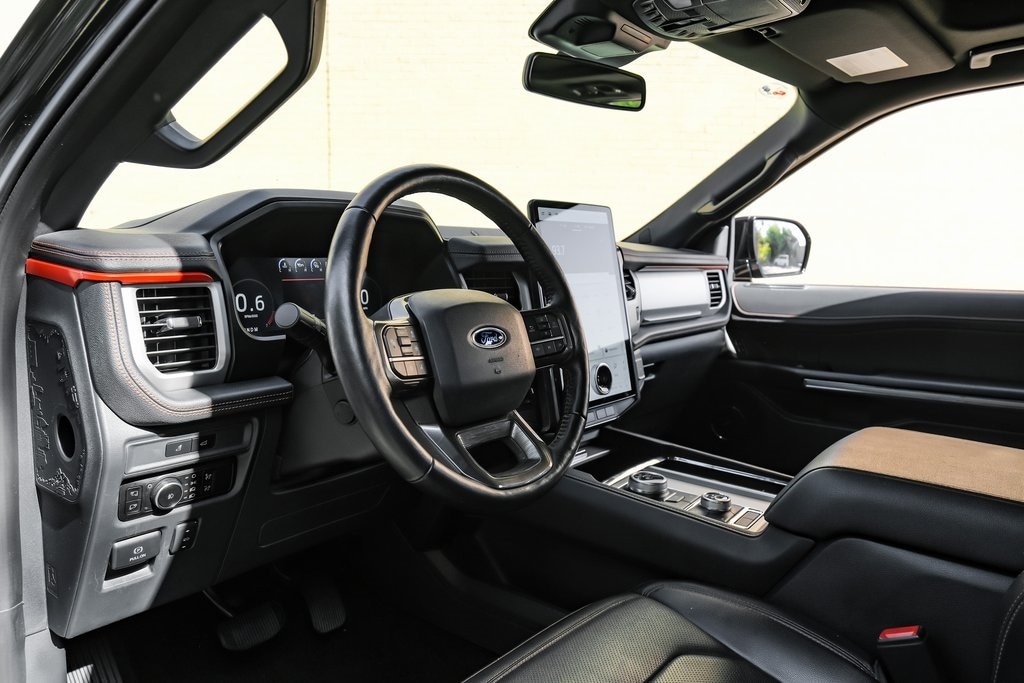 Priced below KBB Fair Purchase Price! CARFAX One-Owner. Forged Green Metallic 2023 Ford Expedition Timberline Heavy-Duty Trailer Tow Package, $81,650 ORIGINAL M 4WD 10-Speed Automatic 3.5L V6 4WD, 15.5" LCD Capacitive Touchscreen, 2nd Row Leather Trimmed Pwr-Folding Captain's Chairs, 2nd Row Power Windows, Ambient Lighting, Equipment Group 501A High Package, Front & Rear Upgraded Carpet Floor Mats, Heated & Ventilated Leather Front Captain's Chairs, Heated Steering Wheel, Heavy-Duty Trailer Tow Package, Instrument Panel Cluster, Integrated Trailer Brake Controller, Panoramic Vista Roof, Power-Folding Sideview Mirrors w/Autofold, Pro Trailer Backup Assist, Radio: B&O Sound System by Bang & Olufsen, Rain-Sensing Wipers (Front Only), SiriusXM w/360L, SYNC 4 w/Enhanced Voice Recognition, Vinyl Center Console. Equipment Group 501A High Package (15.5" LCD Capacitive Touchscreen, 2nd Row Leather Trimmed Pwr-Folding Captain's Chairs, 2nd Row Power Windows, Ambient Lighting, Front & Rear Upgraded Carpet Floor Mats, Heated & Ventilated Leather Front Captain's Chairs, Heated Steering Wheel, Instrument Panel Cluster, Panoramic Vista Roof, Power-Folding Sideview Mirrors w/Autofold, Radio: B&O Sound System by Bang & Olufsen, Rain-Sensing Wipers (Front Only), SiriusXM w/360L, SYNC 4 w/Enhanced Voice Recognition, and Vinyl Center Console), Heavy-Duty Trailer Tow Package (Integrated Trailer Brake Controller and Pro Trailer Backup Assist), 4WD, 360-Degree Camera w/Split View, 3rd row seats: split-bench, 4-Wheel Disc Brakes, 6 Speakers, ABS brakes, Adjustable pedals, Advanced Cargo Manager, Air Conditioning, Alloy wheels, AM/FM radio: SiriusXM with 360L, Auto High-beam Headlights, Auto Start-Stop Removal (DISC), Auto-dimming door mirrors, Auto-dimming Rear-View mirror, Automatic temperature control, Brake assist, Bumpers: body-color, Compass, Connected Built-In Navigation, ControlTrac w/3.73 Axle Ratio, Delay-off headlights, Driver door bin, Driver vanity mirror, Dual front impact airbags, Dual front side impact airbags, Electronic Stability Control, Emergency communication system: SYNC 4 911 Assist, Exterior Parking Camera Rear, Turn signal indicator mirrors, Variably intermittent wipers, Ventilated front seats, Voltmeter, and Wheels: 18" Ebony-Painted.