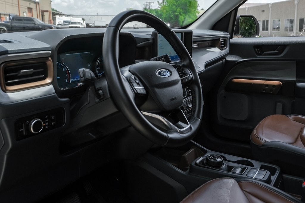 Priced below KBB Fair Purchase Price! CARFAX One-Owner. Cactus Gray 2024 Ford Maverick Lariat AWD 8-Speed Automatic EcoBoost 2.0L I4 GTDi DOHC Turbocharged VCT Equipment Group 500A Standard. Equipment Group 500A Standard, 3.63 Axle Ratio, 4-Wheel Disc Brakes, 8 Speakers, ABS brakes, ActiveX Trimmed Front Bucket Seats, Air Conditioning, Alloy wheels, AM/FM radio: SiriusXM, Auto High-beam Headlights, Automatic temperature control, Brake assist, Bumpers: body-color, Compass, Delay-off headlights, Driver door bin, Driver vanity mirror, Dual front impact airbags, Dual front side impact airbags, Electronic Stability Control, Emergency communication system: 911 Assist, Exterior Parking Camera Rear, Four wheel independent suspension, Front anti-roll bar, Front Bucket Seats, Front Center Armrest, Front dual zone A/C, Front License Plate Bracket, Front reading lights, Fully automatic headlights, Heated door mirrors, Heated front seats, Heated steering wheel, Illuminated entry, Knee airbag, Low tire pressure warning, Navigation System, Occupant sensing airbag, Outside temperature display, Overhead airbag, Overhead console, Panic alarm, Passenger door bin, Passenger vanity mirror, Power door mirrors, Power driver seat, Power steering, Power windows, Radio data system, Radio: B&O Sound System by Bang & Olufsen, Rear anti-roll bar, Rear Parking Sensors, Rear seat center armrest, Rear step bumper, Remote keyless entry, Security system, SiriusXM Radio, Speed control, Speed-sensing steering, Steering wheel mounted audio controls, SYNC 3 Communications & Entertainment System, Tachometer, Telescoping steering wheel, Tilt steering wheel, Traction control, Trip computer, and Wheels: 18" Machined-Face Bright Aluminum.