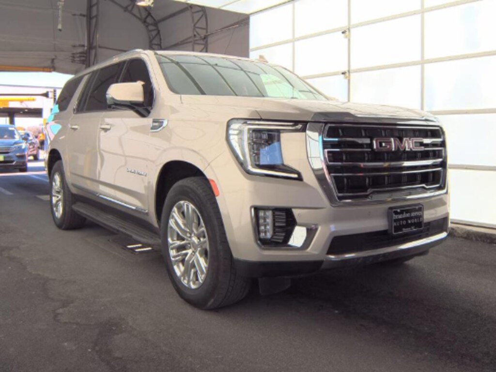 Priced below KBB Fair Purchase Price! CARFAX One-Owner. Pearl Beige Metallic 2022 GMC Yukon XL SLT 4WD 10-Speed Automatic with Overdrive EcoTec3 5.3L V8 4WD, 2 Presets For Outside Rearview Mirrors, 2 Presets For Power Driver Seat, 3rd Row 60/40 Power-Folding Split-Bench Seat, Automatic Stop/Start, Bose 9-Speaker Stereo Audio System Feature, Bright Chrome Bodyside Moldings, Bright Front & Rear Door Sill Plates, Chrome Door Handles w/Body-Color Strip, Hands-Free Power Programmable Rear Liftgate, HD Surround Vision, Heated & Ventilated Driver & Front Passenger Seats, Heated 2nd Row Outboard Position Seats, Heated Driver & Front Passenger Seats, Heated Steering Wheel, Inside Rear-View Auto-Dimming Mirror, License Plate Front Mounting Package, Outside Heated Power-Adjustable Mirrors, Power Release 2nd Row 60/40 Split-Folding Bench Seat, Power Tilt & Telescopic Steering Column, Preferred Equipment Group 4SA, Rear Pedestrian Alert, Safety Alert Seat, SLT Luxury Package, Start/Stop System Disable Button, Universal Home Remote, Wireless Charging. License Plate Front Mounting Package, Preferred Equipment Group 4SA (2 Presets For Power Driver Seat, Automatic Stop/Start, Bose 9-Speaker Stereo Audio System Feature, Bright Chrome Bodyside Moldings, Bright Front & Rear Door Sill Plates, Chrome Door Handles w/Body-Color Strip, Hands-Free Power Programmable Rear Liftgate, Heated & Ventilated Driver & Front Passenger Seats, Heated Driver & Front Passenger Seats, Inside Rear-View Auto-Dimming Mirror, Safety Alert Seat, Start/Stop System Disable Button, Universal Home Remote, and Wireless Charging), SLT Luxury Package (2 Presets For Outside Rearview Mirrors, 3rd Row 60/40 Power-Folding Split-Bench Seat, HD Surround Vision, Heated 2nd Row Outboard Position Seats, Heated Steering Wheel, Outside Heated Power-Adjustable Mirrors, Power Release 2nd Row 60/40 Split-Folding Bench Seat, Power Tilt & Telescopic Steering Column, and Rear Pedestrian Alert), 4WD, 3.23 Rear Axle Ratio, 3rd row seats: split-bench, 4-Wheel Disc Brakes, 9 Speakers, ABS brakes, Air Conditioning, Alloy wheels, AM/FM radio: SiriusXM with 360L, AM/FM Stereo, Apple CarPlay/Android Auto, Auto High-beam Headlights, Auto-dimming Rear-View mirror, Automatic Emergency Braking, Automatic temperature control, Bodyside moldings, Brake assist, Bumpers: body-color, Compass, Delay-off headlights, Driver door bin, Driver vanity mirror, Dual front impact airbags, Dual front side impact airbags, Dual-Pane Panoramic Power Sunroof, Electronic Stability Control, Emergency communication system: OnStar and GMC Connected Services capable, Following Distance Indicator, Forward Collision Alert, Four wheel independent suspension, Front & Rear Park Assist, Front anti-roll bar, Front Bucket Seats, Front Center Armrest, Front dual zone A/C, Front fog lights, Front Pedestrian Braking, Front reading lights, Fully automatic headlights, Garage door transmitter, Heated door mirrors, Heated front seats, Illuminated entry, IntelliBeam Automatic High Beam On/Off, Lane Change Alert w/Side Blind Zone Alert, Lane Keep Assist w/Lane Departure Warning, Leather steering wheel, Low tire pressure warning, Memory seat, Navigation System, Not Equipped w/Steering Column Lock, Occupant sensing airbag, Outside temperature display, Overhead airbag, Overhead console, Panic alarm, Passenger door bin, Passenger vanity mirror, Perforated Leather-Appointed Seating, Power door mirrors, Power driver seat, Power Liftgate, Power passenger seat, Power steering, Power windows, Premium Smooth Ride Suspension, Rain sensing wipers, Rear air conditioning, Rear anti-roll bar, Rear Cross Traffic Alert, Rear reading lights, Rear seat center armrest, Rear Seat Media System (DISC), Rear window defroster, Rear window wiper, Remote keyless entry, Roof rack: rails only, Security system, SiriusXM w/360L, Speed control, Speed-sensing steering, Split folding rear seat, Spoiler, Steering wheel mounted audio controls, Tachometer, Telescoping steering wheel, T