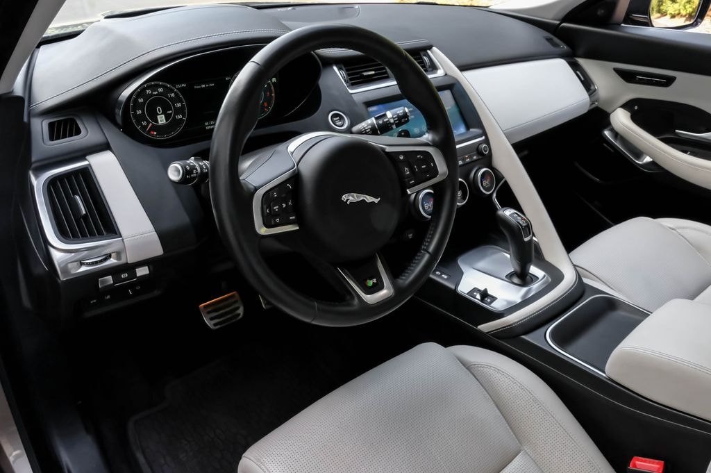 Priced below KBB Fair Purchase Price! CARFAX One-Owner. Borasco Gray Metallic 2019 Jaguar E-PACE R-Dynamic AWD 9-Speed Automatic 2.0L I4 Turbocharged 11 Speakers, 18 Way Memory Front Seats, 20" Wheels, 4-Wheel Disc Brakes, 4.544 Axle Ratio, ABS brakes, Air Conditioning, Alloy wheels, AM/FM radio, Auto High-beam Headlights, Auto-dimming door mirrors, Auto-dimming Rear-View mirror, Automatic temperature control, Brake assist, Bumpers: body-color, Compass, Delay-off headlights, Driver door bin, Driver vanity mirror, Dual front impact airbags, Dual front side impact airbags, Electronic Stability Control, Emergency communication system: InControl Protect, Exterior Parking Camera Rear, Four wheel independent suspension, Front anti-roll bar, Front Bucket Seats, Front Center Armrest, Front dual zone A/C, Front fog lights, Front reading lights, Fully automatic headlights, Heated door mirrors, Illuminated entry, Leather Shift Knob, Low tire pressure warning, Memory seat, Navigation system: InControl Navigation Pro, Occupant sensing airbag, Outside temperature display, Overhead airbag, Overhead console, Panic alarm, Passenger door bin, Passenger vanity mirror, Power door mirrors, Power driver seat, Power Liftgate, Power passenger seat, Power steering, Power windows, Radio data system, Radio: Meridian 380W Sound System, Rain sensing wipers, Rear anti-roll bar, Rear fog lights, Rear reading lights, Rear seat center armrest, Rear window defroster, Rear window wiper, Remote keyless entry, Security system, Speed control, Speed-sensing steering, Split folding rear seat, Spoiler, Sport steering wheel, Steering wheel mounted audio controls, Tachometer, Telescoping steering wheel, Tilt steering wheel, Traction control, Trip computer, Turn signal indicator mirrors, Variably intermittent wipers, Wheels: 20" 5 Split-Spoke Satin Grey Diamond, and Windsor Leather Seat Trim.