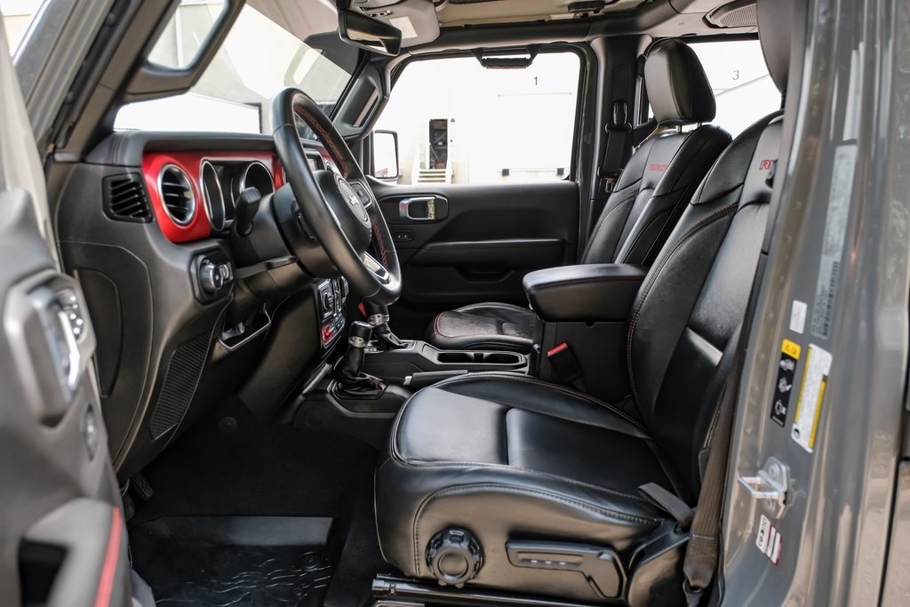 Sting-Gray Clearcoat 2021 Jeep Wrangler Unlimited Rubicon 4WD 8-Speed Automatic 2.0L I4 DOHC 8.4" Radio & Premium Audio Group (1-Year SiriusXM Guardian Trial, 4G LTE Wi-Fi Hot Spot, 5-Year SiriusXM Traffic Service, 5-Year SiriusXM Travel Link Service, 8.4" Touchscreen Display, Alpine Premium Audio System, Auto-Dimming Rear-View Mirror, Emergency/Assistance Call, For Details, Visit DriveUconnect.com, GPS Navigation, HD Radio, Off-Road Info Pages, Radio: Uconnect 4C Nav w/8.4" Display, SiriusXM Traffic Plus, and SiriusXM Travel Link), Quick Order Package 22R, Trailer Tow & HD Electrical Group (240 Amp Alternator, 7 & 4 Pin Wiring Harness, 700 Amp Maintenance Free Battery, Auxiliary Switches, and Class II Receiver Hitch), 4-Wheel Disc Brakes, 4.10 Rear Axle Ratio, 8 Speakers, ABS brakes, Air Conditioning, Alloy wheels, AM/FM radio: SiriusXM, Apple CarPlay/Android Auto, Automatic temperature control, Aux Battery, Black 3-Piece Hard Top, Body Color Fender Flares, Brake assist, Compass, Delay-off headlights, Driver door bin, Driver vanity mirror, Dual front impact airbags, Dual front side impact airbags, Electronic Stability Control, Freedom Panel Storage Bag, Front anti-roll bar, Front Bucket Seats, Front Center Armrest w/Storage, Front dual zone A/C, Front fog lights, Front License Plate Bracket, Front reading lights, Fully automatic headlights, Garage door transmitter, Heated door mirrors, Illuminated entry, Integrated roll-over protection, Jeep Trail Rated Kit, Leather steering wheel, Low tire pressure warning, MOPAR All-Weather Floor Mats (DISC), No Soft Top, Non-Lock Fuel Cap w/o Discriminator, Occupant sensing airbag, Outside temperature display, Panic alarm, ParkView Rear Back-Up Camera, Passenger door bin, Passenger vanity mirror, Performance Suspension, Power door mirrors, Power steering, Power windows, Premium Cloth Low-Back Bucket Seats, Radio data system, Radio: Uconnect 4 w/7" Display, Rear anti-roll bar, Rear reading lights, Rear Window Defroster, Rear Window Wiper/Washer, Remote keyless entry, Remote Proximity Keyless Entry, Remote Start System, Security system, Speed control, Split folding rear seat, Steering wheel mounted audio controls, Stop-Start Dual Battery System, Tachometer, Telescoping steering wheel, Tilt steering wheel, Traction control, Trip computer, Variably intermittent wipers, Voltmeter, and Wheels: 17" x 7.5" Machined w/Black PocketS.