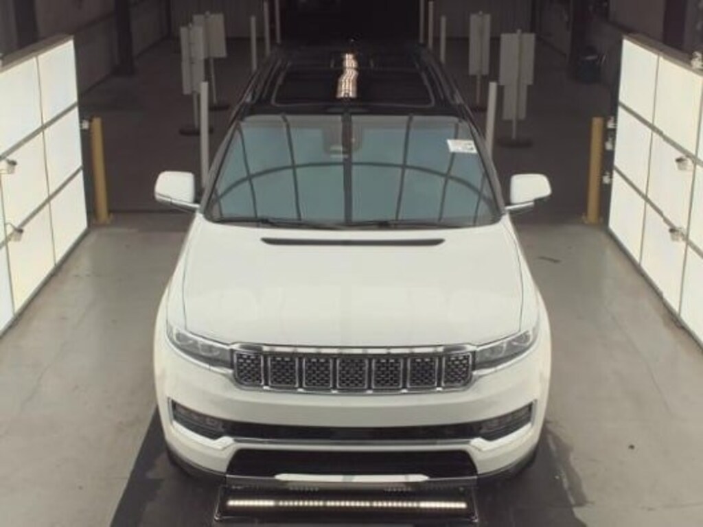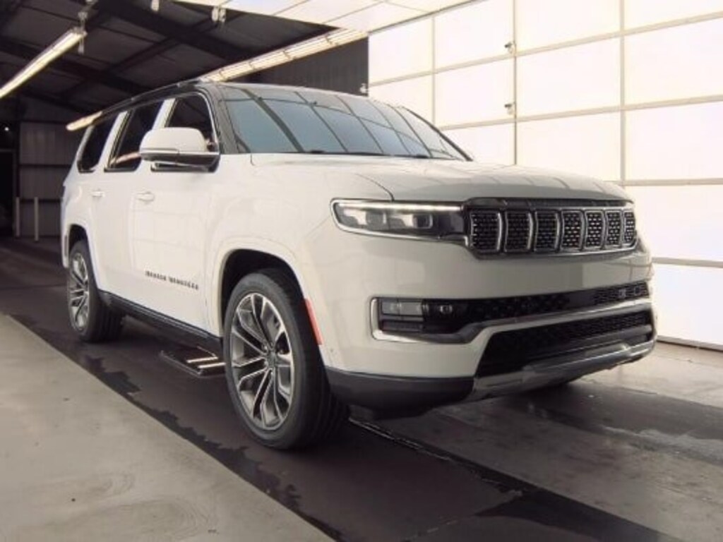 Priced below KBB Fair Purchase Price! Bright White Clearcoat 2022 Jeep Grand Wagoneer Series III 4WD 8-Speed Automatic 6.4L V8 Amazon Fire TV Built-In, Quick Order Package 23W, Rear Seat Video Group 1, Seatback Video Screens, Two Tone Paint Group, Video USB Port. Quick Order Package 23W, Rear Seat Video Group 1 (Amazon Fire TV Built-In, Seatback Video Screens, and Video USB Port), Two Tone Paint Group, 3.92 Rear Axle Ratio, 3rd row seats: bench, 4-Wheel Disc Brakes, ABS brakes, Adjustable pedals, Air Conditioning, Alloy wheels, AM/FM radio: SiriusXM with 360L, Anti-whiplash front head restraints, Audio memory, Auto High-beam Headlights, Auto-dimming door mirrors, Auto-dimming Rear-View mirror, Auto-leveling suspension, Automatic temperature control, Brake assist, Bumpers: body-color, Compass, Delay-off headlights, Driver door bin, Driver vanity mirror, Driver's Seat Mounted Armrest, Dual front impact airbags, Dual front side impact airbags, Electronic Stability Control, Four wheel independent suspension, Front anti-roll bar, Front Bucket Seats, Front Center Armrest w/Storage, Front dual zone A/C, Front fog lights, Front reading lights, Fully automatic headlights, Garage door transmitter, Genuine wood console insert, Genuine wood dashboard insert, Genuine wood door panel insert, Heads-Up Display, Heated door mirrors, Heated front seats, Heated rear seats, Heated steering wheel, Illuminated entry, Knee airbag, Leather steering wheel, Low tire pressure warning, Memory seat, Navigation System, Night vision lights, Normal Duty Suspension, Occupant sensing airbag, Outside temperature display, Overhead airbag, Overhead console, Panic alarm, Passenger door bin, Passenger seat mounted armrest, Passenger vanity mirror, Pedal memory, Power adjustable front head restraints, Power door mirrors, Power driver seat, Power Liftgate, Power moonroof, Power passenger seat, Power steering, Power windows, Premium Leather Trimmed Bucket Seats, Radio data system, Radio: Uconnect 5 Nav w/12.0" Display, Rain sensing wipers, Rear air conditioning, Rear anti-roll bar, Rear dual zone A/C, Rear reading lights, Rear seat center armrest, Rear window defroster, Rear window wiper, Reclining 3rd row seat, Remote keyless entry, Roof rack, Security system, Speed control, Speed-sensing steering, Speed-Sensitive Wipers, Split folding rear seat, Steering wheel memory, Steering wheel mounted audio controls, Tachometer, Telescoping steering wheel, Tilt steering wheel, Traction control, Trip computer, Turn signal indicator mirrors, Variably intermittent wipers, Ventilated front seats, Ventilated rear seats, Voltmeter, Wheels: 22" x 9.0" Painted Aluminum, and Wheels: 22" x 9.0" Premium 4 Aluminum.