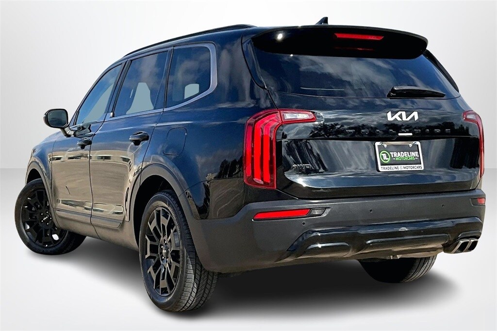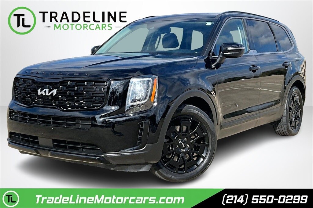 Priced below KBB Fair Purchase Price! CARFAX One-Owner. Ebony Black 2022 Kia Telluride EX AWD 8-Speed Automatic 3.8L V6 DOHC 20" x 7.5" Machined Alloy Wheels, 2nd Row Captain Chairs, Black Finish Radiator Grille, EX Premium Package, Exclusive Black Headlight Bezels, Front & Rear Gloss Black Finish Bumper Skid Plates, Gloss Black Finish Exterior Emblems, Gloss Black Finish Front & Rear Door Garnish, Gloss Black Finish Roof Rails, LED Headlamps, Nightfall Edition Package, Satin Chrome Roof Rails, Wheels: 20" x 7.5" Exclusive Black Alloy. EX Premium Package (20" x 7.5" Machined Alloy Wheels, 2nd Row Captain Chairs, LED Headlamps, and Satin Chrome Roof Rails), Nightfall Edition Package (Black Finish Radiator Grille, Exclusive Black Headlight Bezels, Front & Rear Gloss Black Finish Bumper Skid Plates, Gloss Black Finish Exterior Emblems, Gloss Black Finish Front & Rear Door Garnish, Gloss Black Finish Roof Rails, and Wheels: 20" x 7.5" Exclusive Black Alloy), 3.648 Axle Ratio, 3rd row seats: split-bench, 4-Wheel Disc Brakes, 6 Speakers, ABS brakes, Air Conditioning, Alloy wheels, AM/FM radio: SiriusXM, Apple CarPlay & Android Auto, Auto-dimming Rear-View mirror, Automatic temperature control, Brake assist, Bumpers: body-color, Carpeted Floor Mats, Compass, Delay-off headlights, Driver door bin, Driver vanity mirror, Dual front impact airbags, Dual front side impact airbags, Electronic Stability Control, Emergency communication system: 911 Connect, Four wheel independent suspension, Front anti-roll bar, Front Bucket Seats, Front Center Armrest, Front dual zone A/C, Front reading lights, Fully automatic headlights, Heated & Ventilated Front Bucket Seats, Heated door mirrors, Heated front seats, Heated steering wheel, Illuminated entry, Knee airbag, Leather Seat Trim, Leather Shift Knob, Leather steering wheel, Low tire pressure warning, Navigation System, Occupant sensing airbag, Outside temperature display, Overhead airbag, Overhead console, Panic alarm, Passenger door bin, Passenger vanity mirror, Power door mirrors, Power driver seat, Power Liftgate, Power moonroof, Power passenger seat, Power steering, Power windows, Radio data system, Radio: AM/FM Display Audio System, Rear air conditioning, Rear anti-roll bar, Rear audio controls, Rear reading lights, Rear seat center armrest, Rear window defroster, Rear window wiper, Reclining 3rd row seat, Remote keyless entry, Roof rack: rails only, Security system, Smart Key w/ Push Button and Remote Start, Speed control, Speed-sensing steering, Split folding rear seat, Spoiler, Steering wheel mounted audio controls, Tachometer, Telescoping steering wheel, Tilt steering wheel, Traction control, Trip computer, Turn signal indicator mirrors, Variably intermittent wipers, Ventilated front seats, and Wheels: 18" x 7.5" Machined Alloy.