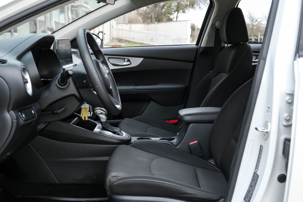 CARFAX One-Owner. Snow White Pearl 2023 Kia Forte LXS FWD CVT 2.0L I4 MPI 16" x 6.5J Alloy Wheels, 4 Speakers, 4-Wheel Disc Brakes, ABS brakes, Air Conditioning, Alloy wheels, AM/FM radio, Apple CarPlay & Android Auto, Auto High-beam Headlights, Brake assist, Bumpers: body-color, Cloth Seat Trim, Delay-off headlights, Driver door bin, Driver vanity mirror, Dual front impact airbags, Dual front side impact airbags, Electronic Stability Control, Exterior Parking Camera Rear, Front anti-roll bar, Front Bucket Seats, Front Center Armrest, Front reading lights, Front wheel independent suspension, Fully automatic headlights, Illuminated entry, Low tire pressure warning, Occupant sensing airbag, Outside temperature display, Overhead airbag, Overhead console, Panic alarm, Passenger door bin, Passenger vanity mirror, Power door mirrors, Power steering, Power windows, Radio data system, Radio: 8" Display Audio, Rear window defroster, Remote keyless entry, Security system, Speed control, Split folding rear seat, Steering wheel mounted audio controls, Tachometer, Telescoping steering wheel, Tilt steering wheel, Traction control, Trip computer, and Variably intermittent wipers.