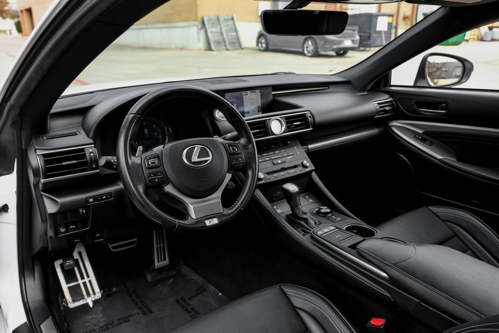 Ultra White 2017 Lexus RC 200t RWD 8-Speed Automatic with Direct Shift 2.0L I4 DOHC 16V Accessory Package 2, Adaptive Variable Suspension, Alloy Wheel Locks, Aluminum Sport Pedals, Black Headliner, Blind Spot Monitor w/Rear Cross Traffic Alert, Cargo Net, Carpet Trunk Mat, Driver Seat Memory, F Sport Front Fender Badges, F Sport Nuluxe Seat Trim, F Sport Package w/Summer Tires, F Sport Shift Knob, Glove Box w/Key, Heated & Vented Driver & Passenger Seats, High-Friction Brake Pads, Key Gloves, LFA Inspired TFT Instrumentation, Perf Leather Steering Wheel w/Paddle Shifters, Power Front Sport Seats w/Contrast Stitching, Power Tilt/Telescoping Steering Column, Rear Bumper Applique, Silver Performance Trim, Sport Vehicle Dynamics Integrated Mgmt (VDIM), Stainless Steel Scuff Plates, Unique Front Fascia/Grille, Wheels: 19" x 9" F SPORT Alloy. Accessory Package 2 (Alloy Wheel Locks, Cargo Net, Carpet Trunk Mat, Key Gloves, and Rear Bumper Applique), F Sport Package w/Summer Tires (Adaptive Variable Suspension, Aluminum Sport Pedals, Black Headliner, Blind Spot Monitor w/Rear Cross Traffic Alert, Driver Seat Memory, F Sport Front Fender Badges, F Sport Nuluxe Seat Trim, F Sport Shift Knob, Glove Box w/Key, Heated & Vented Driver & Passenger Seats, High-Friction Brake Pads, LFA Inspired TFT Instrumentation, Perf Leather Steering Wheel w/Paddle Shifters, Power Front Sport Seats w/Contrast Stitching, Power Tilt/Telescoping Steering Column, Silver Performance Trim, Sport Vehicle Dynamics Integrated Mgmt (VDIM), Stainless Steel Scuff Plates, Unique Front Fascia/Grille, and Wheels: 19" x 9" F SPORT Alloy), 10 Speakers, 4-Wheel Disc Brakes, ABS brakes, Air Conditioning, Alloy wheels, AM/FM radio: SiriusXM, Auto-dimming Rear-View mirror, Automatic temperature control, Back-Up Monitor w/Dynamic Grid Lines, Brake assist, Bumpers: body-color, CD player, Compass, Delay-off headlights, Driver door bin, Driver vanity mirror, Dual front impact airbags, Dual front side impact airbags, Electronic Stability Control, Emergency communication system: Safety Connect, Exterior Parking Camera Rear, Four wheel independent suspension, Front anti-roll bar, Front Bucket Seats, Front Center Armrest, Front dual zone A/C, Front reading lights, Fully automatic headlights, Garage door transmitter: HomeLink, Genuine wood dashboard insert, Genuine wood door panel insert, Turn signal indicator mirrors, Variably intermittent wipers, and Wheels: 18" x 8" Fr & 18" x 9" 5-Spoke Alloy.
