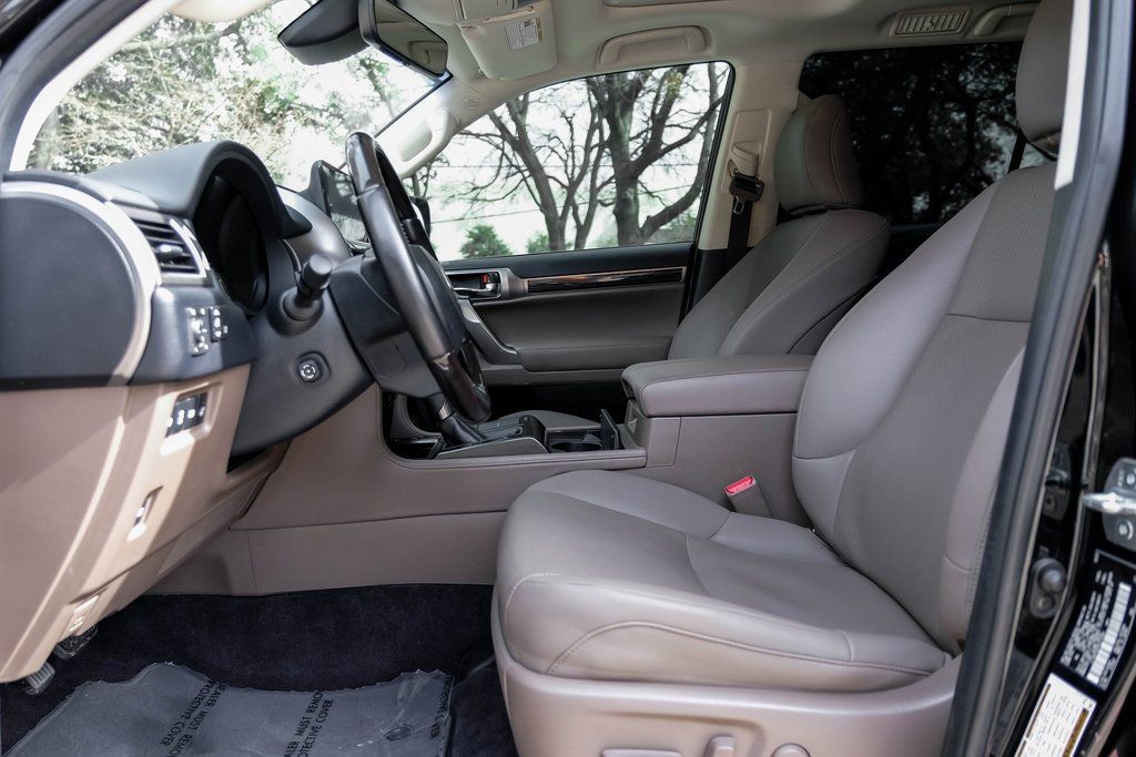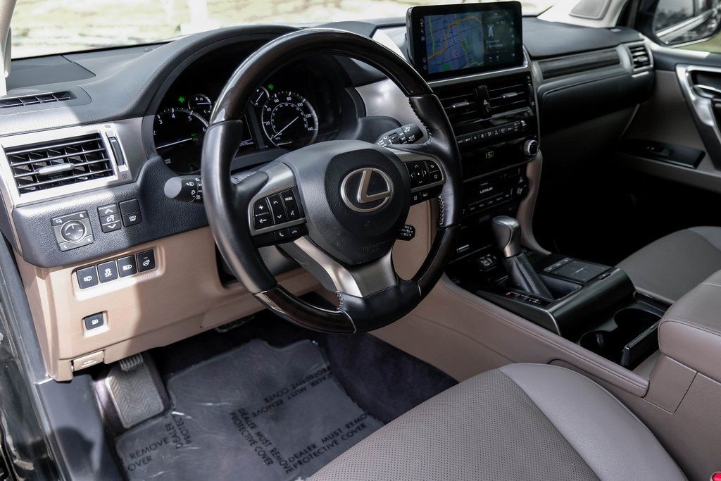 2022 Lexus GX 460 4WD 6-Speed Automatic with Sequential Shift ECT 4.6L V8 DOHC Dual VVT-i 32V 18" x 7.5J Aluminum Alloy Wheels, 3.909 Axle Ratio, 3rd row seats: split-bench, 4-Wheel Disc Brakes, 9 Speakers, ABS brakes, Air Conditioning, Alloy wheels, AM/FM radio: SiriusXM, Anti-whiplash front head restraints, Apple CarPlay/Android Auto, Auto High-beam Headlights, Auto tilt-away steering wheel, Auto-dimming Rear-View mirror, Automatic temperature control, Brake assist, Bumpers: body-color, CD player, Compass, Delay-off headlights, Driver door bin, Driver vanity mirror, Driver's Seat Mounted Armrest, Dual front impact airbags, Dual front side impact airbags, Electronic Stability Control, Emergency communication system, Exterior Parking Camera Rear, Front anti-roll bar, Front Bucket Seats, Front dual zone A/C, Front reading lights, Front wheel independent suspension, Fully automatic headlights, Garage door transmitter: HomeLink, Heated door mirrors, Illuminated entry, Illuminated running boards, Knee airbag, Leather Shift Knob, Leather steering wheel, Low tire pressure warning, Memory seat, Navigation System, NuLuxe Synthetic Leather Seat Trim, Occupant sensing airbag, Outside temperature display, Overhead airbag, Overhead console, Panic alarm, Passenger door bin, Passenger seat mounted armrest, Passenger vanity mirror, Power door mirrors, Power driver seat, Power moonroof, Power passenger seat, Power steering, Power windows, Radio data system, Radio: Lexus Multimedia System, Rear anti-roll bar, Rear reading lights, Rear seat center armrest, Rear side impact airbag, Rear window defroster, Rear window wiper, Remote keyless entry, Roof rack: rails only, Security system, Speed control, Speed-sensing steering, Split folding rear seat, Spoiler, Steering wheel memory, Steering wheel mounted audio controls, Tachometer, Telescoping steering wheel, Tilt steering wheel, Traction control, Trip computer, Turn signal indicator mirrors, and Variably intermittent wipers.