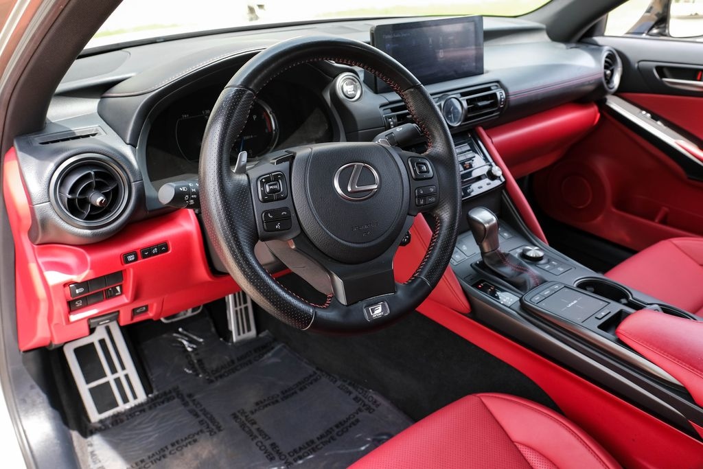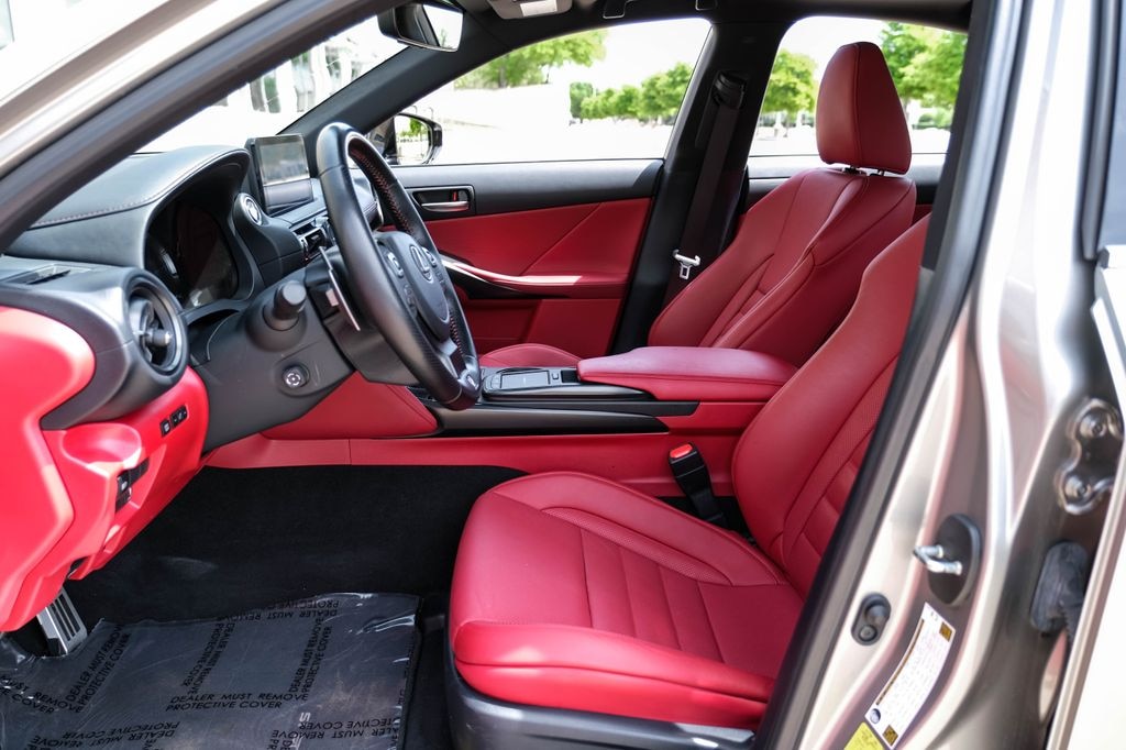 CARFAX One-Owner. Incognito w/Obsidian 2023 Lexus IS 350 F SPORT RWD 8-Speed Automatic 3.5L V6 DOHC Dual VVT-i 24V Circuit Red w/Perforated NuLuxe Seat Trim, Accessory Package, Cargo Net, Carpet Trunk Mat, Key Gloves, Lexus Memory System for Driver's Seat, Memory Package, Navigation Package, Outside Mirrors w/Auto Tilt-Down in Reverse, Power Tilt & Telescoping Steering Wheel. Accessory Package (Cargo Net, Carpet Trunk Mat, and Key Gloves), Memory Package (Lexus Memory System for Driver's Seat, Outside Mirrors w/Auto Tilt-Down in Reverse, and Power Tilt & Telescoping Steering Wheel), Navigation Package, Circuit Red w/Perforated NuLuxe Seat Trim, 10 Speakers, 19" Wheels, 4-Wheel Disc Brakes, ABS brakes, Air Conditioning, Alloy wheels, AM/FM radio: SiriusXM, Apple CarPlay/Android Auto, Auto High-beam Headlights, Auto-dimming door mirrors, Auto-dimming Rear-View mirror, Automatic temperature control, Brake assist, Bumpers: body-color, CD player, Compass, Delay-off headlights, Driver door bin, Driver vanity mirror, Dual front impact airbags, Dual front side impact airbags, Electronic Stability Control, Emergency communication system: Safety Connect (3-year trial), Exterior Parking Camera Rear, Four wheel independent suspension, Front anti-roll bar, Front Bucket Seats, Front Center Armrest, Front dual zone A/C, Front fog lights, Front reading lights, Fully automatic headlights, Garage door transmitter: HomeLink, Heated & Ventilated F SPORT Seats, Heated door mirrors, Heated front seats, Heated steering wheel, Illuminated entry, Knee airbag, Leather Shift Knob, Low tire pressure warning, Occupant sensing airbag, Outside temperature display, Overhead airbag, Overhead console, Panic alarm, Passenger door bin, Passenger vanity mirror, Perforated NuLuxe Seat Trim, Power door mirrors, Power driver seat, Power passenger seat, Power steering, Power windows, Radio data system, Radio: Multimedia System w/8" Color Touchscreen, Rain sensing wipers, Rear anti-roll bar, Rear reading lights, Rear seat center armrest, Rear side impact airbag, Rear window defroster, Remote keyless entry, Security system, Speed control, Speed-sensing steering, Speed-Sensitive Wipers, Split folding rear seat, Spoiler, Sport steering wheel, Steering wheel mounted audio controls, Tachometer, Telescoping steering wheel, Tilt steering wheel, Traction control, Trip computer, Turn signal indicator mirrors, Variably intermittent wipers, and Ventilated front seats.