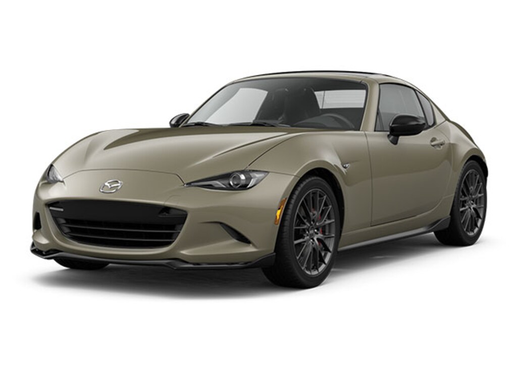 CARFAX One-Owner. Zircon Sand Metallic 2024 Mazda MX-5 Miata RF Club RWD 6-Speed Manual 2.0L 4-Cylinder DOHC 16V 4-Wheel Disc Brakes, 9 Speakers, ABS brakes, Air Conditioning, Alloy wheels, AM/FM radio: SiriusXM, AppLink/Apple CarPlay and Android Auto, Brake assist, Bumpers: body-color, Cloth Upholstery w/Suede Insert, Convertible HardTop, Convertible roof lining, Convertible roof wind blocker, Driver vanity mirror, Dual front impact airbags, Dual front side impact airbags, Electronic Stability Control, Emergency communication system: MAZDA CONNECT, Exterior Parking Camera Rear, Four wheel independent suspension, Front anti-roll bar, Front Bucket Seats, Front Center Armrest, Glass rear window, Heated front seats, Heated Recaro Sport Seats, Illuminated entry, Leather Shift Knob, Low tire pressure warning, MAZDA CONNECT Infotainment System, Occupant sensing airbag, Outside temperature display, Panic alarm, Passenger vanity mirror, Power convertible roof, Power door mirrors, Power steering, Power windows, Radio data system, Radio: Bose Audio System w/AudioPilot, Rear anti-roll bar, Rear window defroster, Remote keyless entry, Speed control, Speed-sensing steering, Spoiler, Sport steering wheel, Steering wheel mounted audio controls, Tachometer, Telescoping steering wheel, Tilt steering wheel, Traction control, Trip computer, Variably intermittent wipers, Wheels: 17" BBS Forged Dark Gunmetal Finish Alloy, and Zircon Sand Metallic Paint Charge.