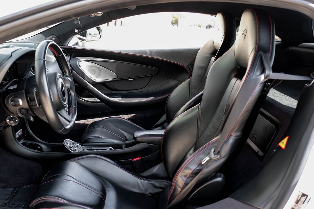 White 2020 McLaren 570S RWD 7-Speed Manual 3.8L V8 Twin Turbocharged 4 Speakers, 4-Wheel Disc Brakes, ABS brakes, Adaptive suspension, Air Conditioning, Alloy wheels, AM/FM Radio, AM/FM radio: SiriusXM, Auto-dimming Rear-View mirror, Automatic temperature control, Bodyside moldings, Bumpers: body-color, Ceramic disc brakes: front and rear, Driver door bin, Dual front impact airbags, Dual front side impact airbags, Electronic Stability Control, Extended Leather Seat Trim, Exterior Parking Camera Rear, Four wheel independent suspension, Front anti-roll bar, Front Bucket Seats, Front Center Armrest, Front dual zone A/C, Front reading lights, Fully automatic headlights, Heated door mirrors, Illuminated entry, Knee airbag, Leather steering wheel, Low tire pressure warning, Manual Sport Seats, Navigation System, Occupant sensing airbag, Outside temperature display, Overhead console, Passenger door bin, Power door mirrors, Power driver seat, Power steering, Power windows, Rain sensing wipers, Rear anti-roll bar, Rear fog lights, Rear window defroster, Remote keyless entry, Security system, Speed control, Speed-sensing steering, Spoiler, Sport steering wheel, Tachometer, Telescoping steering wheel, Tilt steering wheel, Traction control, Trip computer, Turn signal indicator mirrors, Variably intermittent wipers, and Wheels: 19" x 8J Fr & 20" x 10J Rr 10-Spoke Sport.