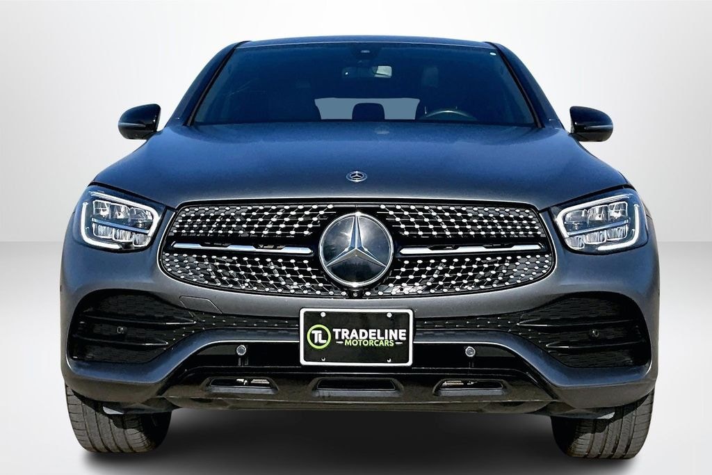 designo Selenite Gray Magno Metallic 2020 Mercedes-Benz GLC GLC 300 Coupe 4MATIC® 4MATIC® 9-Speed Automatic I4 Active Parking Assist, AMG® Bodystyling, AMG® Floor Mats, AMG® Line, AMG® Line Exterior, Flat-Bottom Multifunction Sport Steering Wheel, HANDS-FREE ACCESS, High-Gloss Black Elements, Night Package, Parking Assistance Package, Parking Package, Surround View Camera System. AMG® Line (AMG® Bodystyling, AMG® Floor Mats, AMG® Line Exterior, and Flat-Bottom Multifunction Sport Steering Wheel), Night Package (High-Gloss Black Elements), Parking Assistance Package (Active Parking Assist, HANDS-FREE ACCESS, and Surround View Camera System), Parking Package, 3.27 Axle Ratio, 4-Way Lumbar Support, 4-Wheel Disc Brakes, 6 Speakers, ABS brakes, Air Conditioning, Alloy wheels, AM/FM radio: SiriusXM, Apple CarPlay®/Android Auto®, Auto tilt-away steering wheel, Auto-dimming door mirrors, Auto-dimming Rear-View mirror, Automatic temperature control, Brake assist, Bumpers: body-color, Child-Seat-Sensing Airbag, Delay-off headlights, Driver door bin, Driver vanity mirror, Dual front impact airbags, Dual front side impact airbags, Electronic Stability Control, Emergency communication system: eCall Emergency System, Exterior Parking Camera Rear, Four wheel independent suspension, Front anti-roll bar, Front Bucket Seats, Front Center Armrest, Front dual zone A/C, Front reading lights, Fully automatic headlights, Garage door transmitter: Homelink, Genuine wood dashboard insert, Heated door mirrors, Heated Front Bucket Seats, Heated front seats, Illuminated entry, Knee airbag, Leather steering wheel, Low tire pressure warning, MB-Tex Upholstery, Memory seat, Occupant sensing airbag, Outside temperature display, Overhead airbag, Overhead console, Panic alarm, Passenger door bin, Passenger vanity mirror, Power door mirrors, Power driver seat, Power Driver Seat & Steering Column w/Memory, Power Liftgate, Power moonroof: Panorama, Power Passenger Seat, Power passenger seat, Power steering, Power windows, Premium audio system: MBUX, Radio data system, Radio: MBUX Multimedia System, Rain sensing wipers, Rear anti-roll bar, Rear fog lights, Rear reading lights, Rear seat center armrest, Rear window defroster, Remote keyless entry, Security system, Speed control, Speed-sensing steering, Split folding rear seat, Steering wheel memory, Steering wheel mounted audio controls, Tachometer, Telescoping steering wheel, Tilt steering wheel, Traction control, Trip computer, Turn signal indicator mirrors, Variably intermittent wipers, and Wheels: 19" 5-Spoke w/Grey Accents.