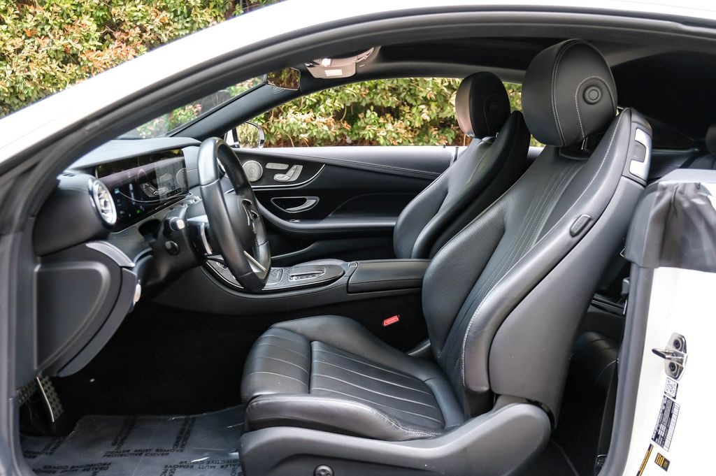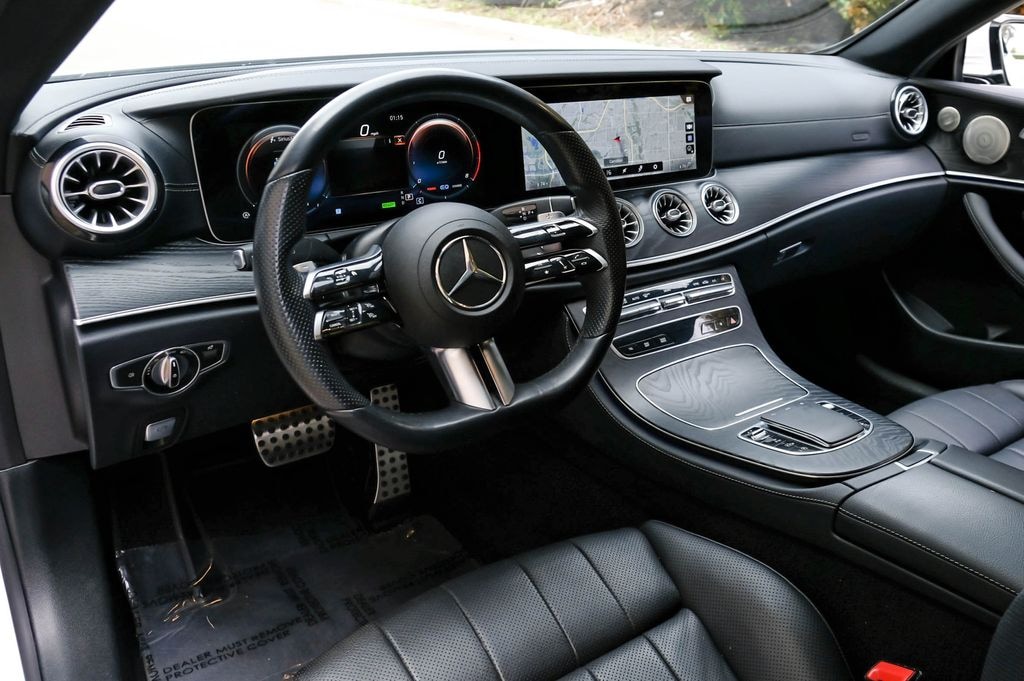 Polar White 2022 Mercedes-Benz E-Class E 450 RWD 9-Speed Automatic 3.0L I6 Turbo AMG® Body Styling, AMG® Floor Mats, AMG® Line, Black Headliner, Galvanized Shift Paddles, Multi-Function Sports Steering Wheel w/Flat Bottom. AMG® Line (AMG® Body Styling, AMG® Floor Mats, Black Headliner, Galvanized Shift Paddles, and Multi-Function Sports Steering Wheel w/Flat Bottom), 13 Speakers, 18" 5-Spoke Wheels, 4-Way Lumbar Support, 4-Wheel Disc Brakes, ABS brakes, Air Conditioning, Alloy wheels, AM/FM radio: SiriusXM, Android Auto®, Anti-whiplash front head restraints, Apple CarPlay®, Apple CarPlay®/Android Auto®, Auto High-beam Headlights, Auto tilt-away steering wheel, Auto-dimming door mirrors, Auto-dimming Rear-View mirror, Automatic temperature control, Brake assist, Bumpers: body-color, Burmester® Surround Sound System, Center Console in Light Brown Sen Wood, Delay-off headlights, Driver door bin, Driver vanity mirror, Dual front impact airbags, Dual front side impact airbags, Electronic Stability Control, Emergency communication system: Mercedes me connect, Extended Mobility Tires, Exterior Parking Camera Rear, Four wheel independent suspension, Front anti-roll bar, Front Bucket Seats, Front Center Armrest, Front dual zone A/C, Front reading lights, Fully automatic headlights, Garage door transmitter: HomeLink, Genuine wood console insert, Genuine wood dashboard insert, Genuine wood door panel insert, Head restraints memory, Heated door mirrors, Heated front seats, Heated Power Front Seats w/3-Position Memory, Illuminated entry, Knee airbag, Leather Shift Knob, Leather Upholstery, Low tire pressure warning, Memory seat, Navigation system: MBUX, Occupant sensing airbag, Outside temperature display, Overhead airbag, Overhead console, Panic alarm, Passenger door bin, Passenger vanity mirror, Power adjustable front head restraints, Power door mirrors, Power driver seat, Power moonroof: Panorama, Power passenger seat, Power steering, Power windows, Premium audio system: MBUX, Radio data system, Radio: MBUX Infotainment System w/Navigation, Rain sensing wipers, Rear anti-roll bar, Rear window defroster, Remote keyless entry, Security system, SiriusXM Radio, Smartphone Integration, Speed control, Speed-sensing steering, Split folding rear seat, Steering wheel memory, Steering wheel mounted audio controls, Tachometer, Telescoping steering wheel, Tilt steering wheel, Traction control, Trip computer, Turn signal indicator mirrors, Variably intermittent wipers, and Weather band radio.