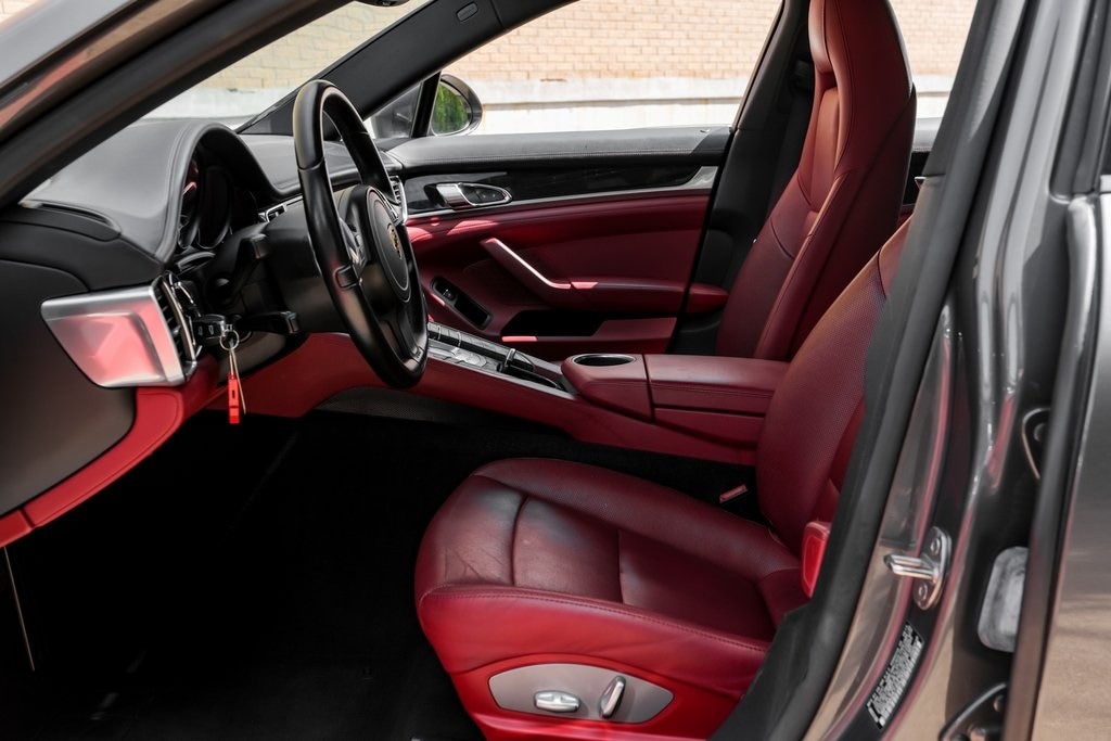 Carbon Gray Metallic 2016 Porsche Panamera 2 RWD 7-Speed Porsche Doppelkupplung (PDK) 3.6L V6 DI 24V Leather Interior Package in Two-Tone Combination. Leather Interior Package in Two-Tone Combination, 4-Wheel Disc Brakes, ABS brakes, Air Conditioning, Alloy wheels, AM/FM radio: SiriusXM, Auto-dimming door mirrors, Auto-dimming Rear-View mirror, Automatic temperature control, Brake assist, Bumpers: body-color, CD player, Compass, Delay-off headlights, Driver door bin, Driver vanity mirror, Dual front impact airbags, Dual front side impact airbags, DVD-Audio, Electronic Stability Control, Four wheel independent suspension, Front anti-roll bar, Front Bucket Seats, Front Center Armrest, Front dual zone A/C, Front reading lights, Fully automatic headlights, Garage door transmitter: HomeLink, Headlight cleaning, Heated door mirrors, Heated front seats, High intensity discharge headlights: Bi-Xenon, Illuminated entry, Knee airbag, Leather Shift Knob, Leather steering wheel, Low tire pressure warning, Memory seat, Navigation System, Occupant sensing airbag, Outside temperature display, Overhead airbag, Overhead console, Panic alarm, Partial-Leather Seat Trim, Passenger door bin, Passenger vanity mirror, Porsche Communication Management w/Navigation, Power door mirrors, Power driver seat, Power Liftgate, Power moonroof, Power passenger seat, Power steering, Power windows, Radio data system, Radio: CDR Audio System w/MP3/Single CD, Rain sensing wipers, Rear anti-roll bar, Rear fog lights, Rear reading lights, Rear seat center armrest, Rear side impact airbag, Rear window defroster, Remote keyless entry, Security system, Speed control, Speed-sensing steering, Split folding rear seat, Spoiler, Sport steering wheel, Steering wheel mounted audio controls, Tachometer, Telescoping steering wheel, Tilt steering wheel, Traction control, Trip computer, and Variably intermittent wipers.
