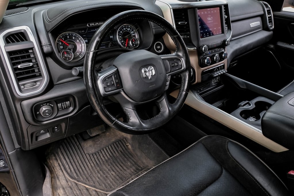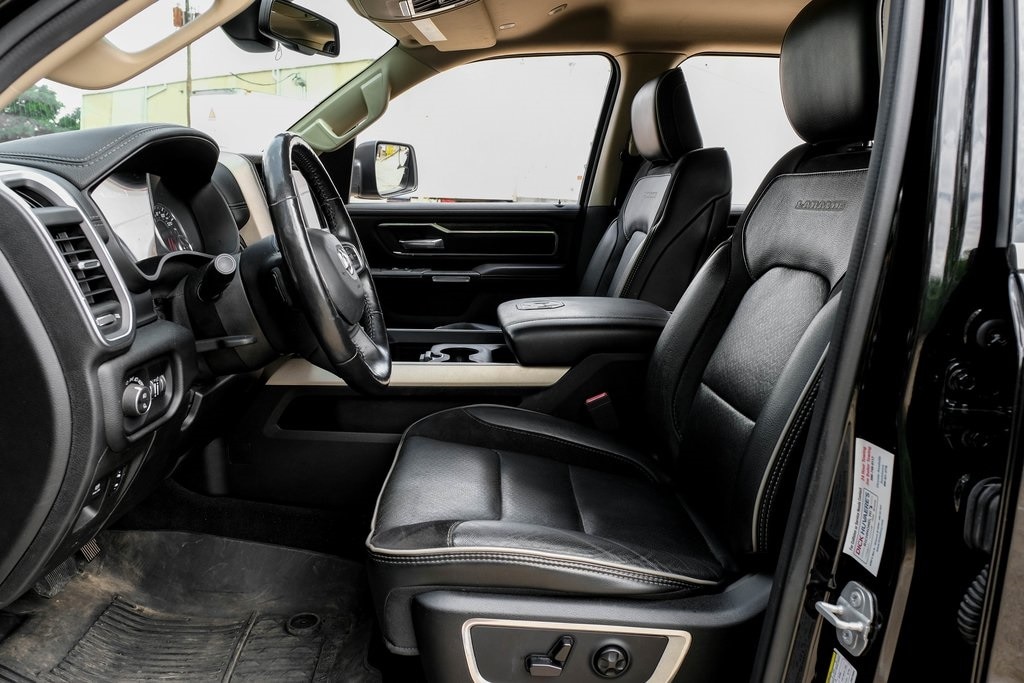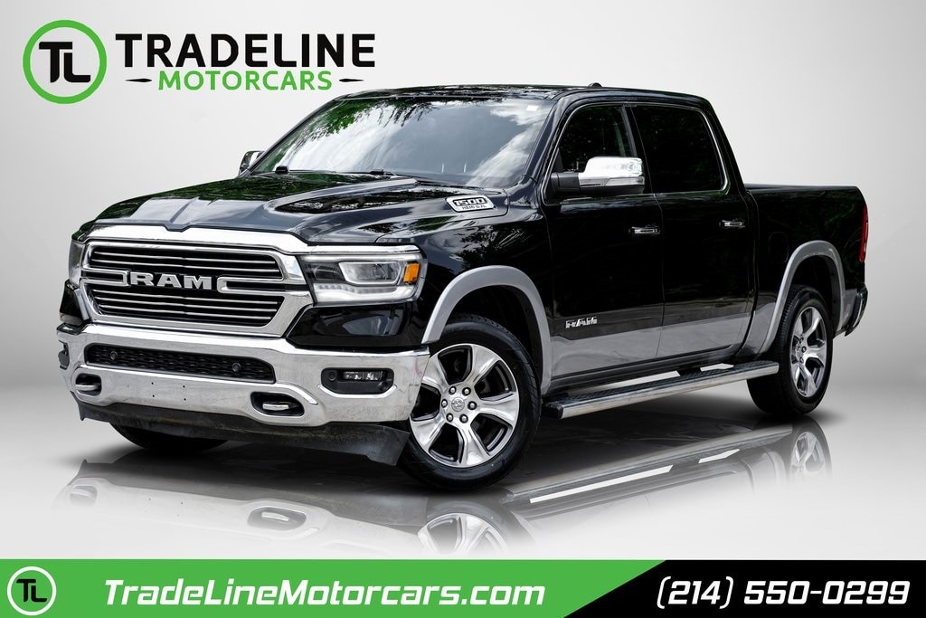 Diamond Black Crystal Pearlcoat 2019 Ram 1500 Laramie CHROME APPEARANCE GROUP, $54,340 ORIGINAL MSRP!!! 4WD 8-Speed Automatic HEMI 5.7L V8 Multi Displacement VVT 4 Adjustable Cargo Tie-Down Hooks, Auto High Beam Headlamp Control, Bed Utility Group, Blind Spot & Cross Path Detection, Bright Day Light Opening Moldings, Chrome Appearance Group, Chrome Tow Hooks, Foam Bottle Insert (Door Trim Panel), Laramie Level 1 Equipment Group, ParkSense Front/Rear Park Assist w/Stop, Pick-Up Box Lighting, Quick Order Package 25H Laramie, Rain Sensitive Windshield Wipers, Rear 60/40 Folding Split Recline Seat, Remote Tailgate Release, Single Disc Remote CD Player, Spray In Bedliner, Tailgate Ajar Warning Lamp, Wheel to Wheel Side Steps. Bed Utility Group (4 Adjustable Cargo Tie-Down Hooks, Pick-Up Box Lighting, and Spray In Bedliner), Chrome Appearance Group (Bright Day Light Opening Moldings, Chrome Tow Hooks, and Wheel to Wheel Side Steps), Laramie Level 1 Equipment Group (Auto High Beam Headlamp Control, Blind Spot & Cross Path Detection, Foam Bottle Insert (Door Trim Panel), ParkSense Front/Rear Park Assist w/Stop, Rain Sensitive Windshield Wipers, Rear 60/40 Folding Split Recline Seat, Remote Tailgate Release, Single Disc Remote CD Player, and Tailgate Ajar Warning Lamp), Quick Order Package 25H Laramie, #1 Seat Foam Cushion, 10 Speakers, 3 Rear Seat Head Restraints, 3.21 Rear Axle Ratio, 4 Way Front Headrests, 4-Wheel Disc Brakes, 48V Belt Starter Generator, 8.4" Touchscreen Display, ABS brakes, Adjustable pedals, Air Conditioning, Alloy wheels, AM/FM radio: SiriusXM, Apple CarPlay, Apple CarPlay/Android Auto, Audio memory, Auto-dimming door mirrors, Auto-dimming Rear-View mirror, Automatic temperature control, Brake assist, Bumpers: chrome, Compass, Delay-off headlights, Driver door bin, Driver Seat Memory, Driver vanity mirror, Dual front impact airbags, Dual front side impact airbags, Electronic Stability Control, Front & Rear Rubber Floor Mats, Front anti-roll bar, Front Center Armrest w/Storage, Front dual zone A/C, Front fog lights, Front reading lights, Front Seat Back Map Pockets, Front wheel independent suspension, Fully automatic headlights, Garage door transmitter, Wheels: 18" x 8" Aluminum Base Painted, and Wheels: 20" x 9" Premium Paint/Polished.