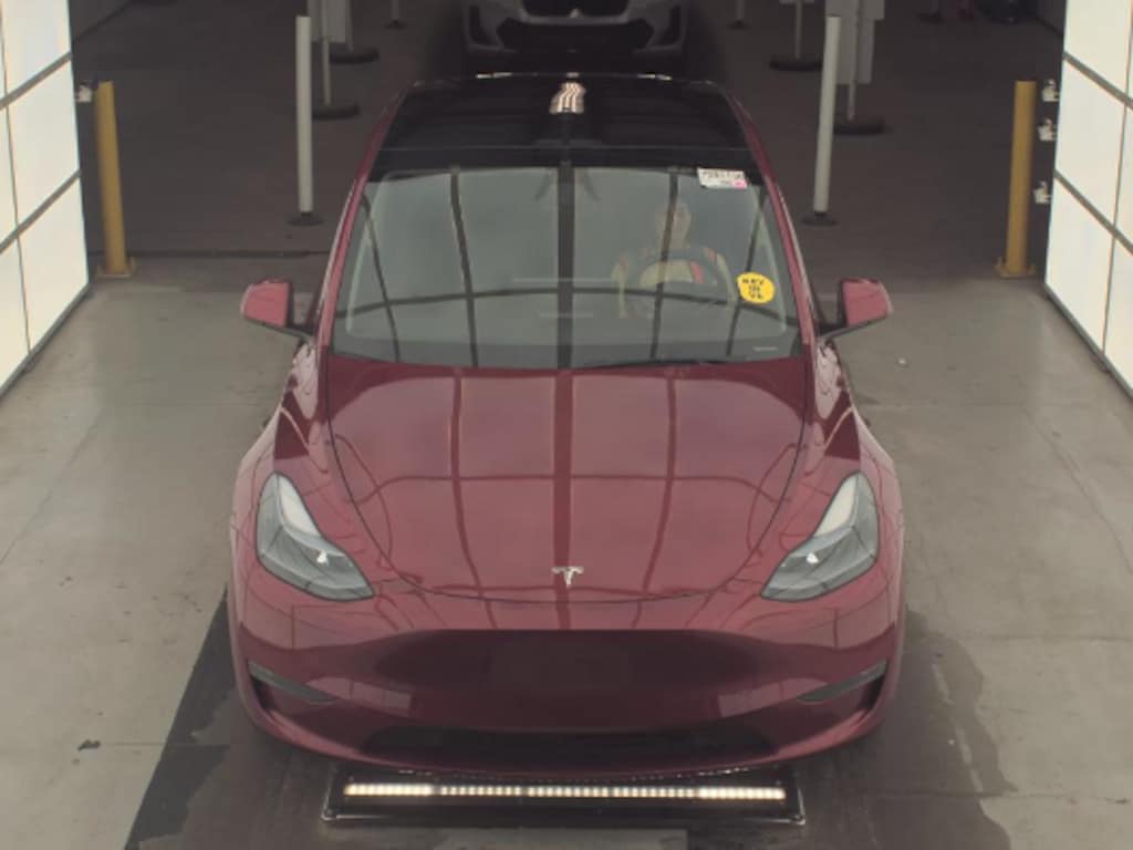 CARFAX One-Owner. Ultra Red 2024 Tesla Model Y Long Range AWD 1-Speed Automatic Electric Motor 14 Speakers, 4-Wheel Disc Brakes, 5 Seat Interior, 9.0 Axle Ratio, ABS brakes, Air Conditioning, Alloy wheels, Audio memory, Auto High-beam Headlights, Auto tilt-away steering wheel, Auto-dimming door mirrors, Auto-dimming Rear-View mirror, Automatic temperature control, Brake assist, Bumpers: body-color, Compass, Delay-off headlights, Driver door bin, Driver vanity mirror, Dual front impact airbags, Dual front side impact airbags, Electronic Stability Control, Emergency communication system, Exterior Parking Camera Rear, Four wheel independent suspension, Front anti-roll bar, Front Bucket Seats, Front Center Armrest, Front dual zone A/C, Front fog lights, Front reading lights, Fully automatic headlights, Genuine wood dashboard insert, Heated door mirrors, Heated front seats, Heated rear seats, Heated steering wheel, HVAC memory, Illuminated entry, Knee airbag, Lane Departure Warning System, Low tire pressure warning, Memory seat, Navigation System, Occupant sensing airbag, Outside temperature display, Overhead airbag, Passenger door bin, Passenger vanity mirror, Power door mirrors, Power driver seat, Power Liftgate, Power passenger seat, Power steering, Power windows, Radio data system, Radio: Premium Audio System w/13 Speakers, Rain sensing wipers, Rear reading lights, Rear seat center armrest, Rear window defroster, Security system, Speed control, Speed-sensing steering, Split folding rear seat, Steering wheel memory, Steering wheel mounted A/C controls, Steering wheel mounted audio controls, Telescoping steering wheel, Tilt steering wheel, Traction control, Trip computer, Variably intermittent wipers, Vegan Leather Seat Trim, and Wheels: 19" x 9.5" Gemini Dark.