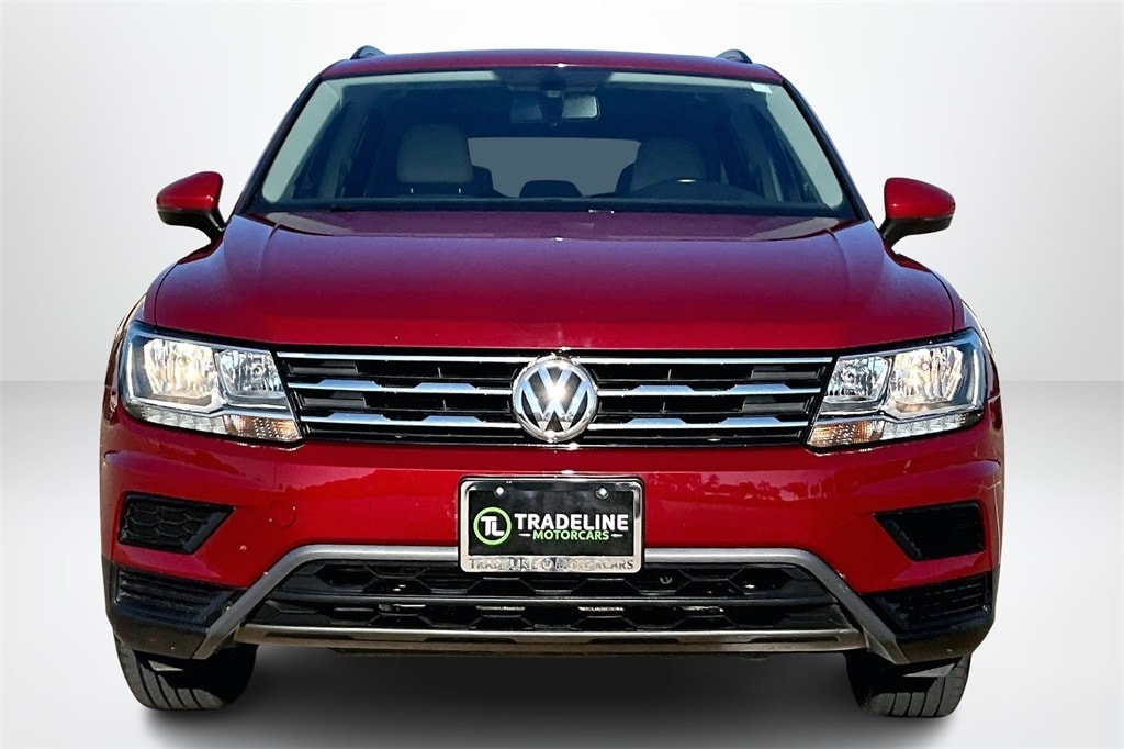 Priced below KBB Fair Purchase Price! CARFAX One-Owner. Cardinal Red Metallic 2019 Volkswagen Tiguan 2.0T SE FWD 8-Speed Automatic with Tiptronic 2.0L TSI DOHC Panoramic Sunroof Package, 3-Row Rubber Mats Kit (DISC), 3.33 Axle Ratio, 3rd row seats: bench, 4-Wheel Disc Brakes, 4-Wheel Independent Suspension, 6 Speakers, ABS brakes, Air Conditioning, Alloy wheels, AM/FM radio: SiriusXM, Automatic temperature control, Brake assist, Bumpers: body-color, Compass, Delay-off headlights, Driver door bin, Driver vanity mirror, Dual front impact airbags, Dual front side impact airbags, Electronic Stability Control, Exterior Parking Camera Rear, First Aid Kit, Forward collision: FCW w/Autonomous Emergency Braking mitigation, Four wheel independent suspension, Front anti-roll bar, Front Bucket Seats, Front Center Armrest, Front dual zone A/C, Front reading lights, Fully automatic headlights, Heated door mirrors, Heated Front Comfort Seats, Heated front seats, Heavy Duty Trunk Liner w/VW CarGo Blocks, Illuminated entry, Leather Shift Knob, Low tire pressure warning, Luggage Net, Occupant sensing airbag, Outside temperature display, Overhead airbag, Overhead console, Panic alarm, Passenger door bin, Passenger vanity mirror, Perforated V-Tex Leatherette Seating Surfaces, Power door mirrors, Power driver seat, Power steering, Power windows, Radio data system, Radio: Composition Media AM/FM/HD, Rear anti-roll bar, Rear reading lights, Rear seat center armrest, Rear window defroster, Rear window wiper, Remote CD player, Remote keyless entry, Roof rack: rails only, Security system, Speed control, Speed-sensing steering, Split folding rear seat, Spoiler, Steering wheel mounted audio controls, Tachometer, Telescoping steering wheel, Tilt steering wheel, Traction control, Trip computer, Turn signal indicator mirrors, Variably intermittent wipers, and Wheels: 17" Wide Multi-Spoke 2-Tone Alloy.