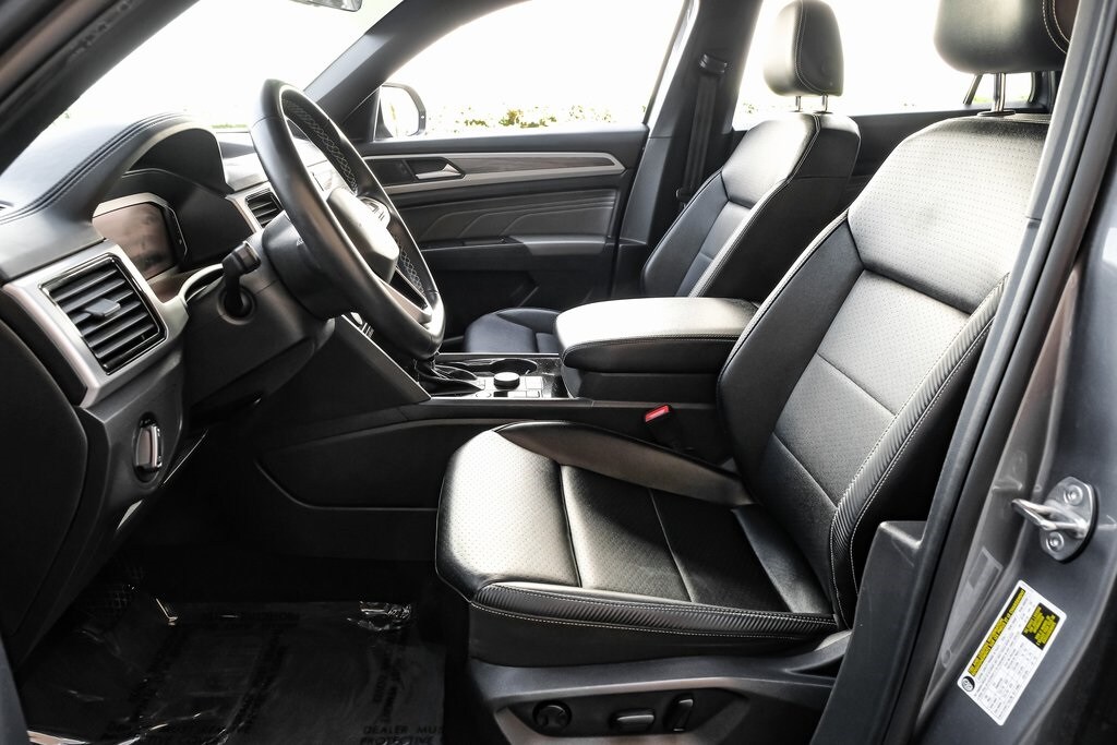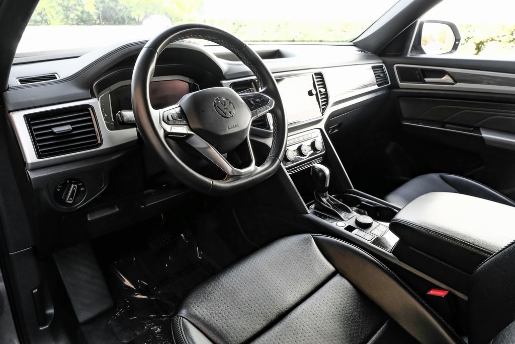 Platinum Gray Metallic 2022 Volkswagen Atlas Cross Sport 3.6L V6 SE w/Technology AWD 8-Speed Automatic with Tiptronic 3.6L VR6 3.60 Axle Ratio, 4-Wheel Disc Brakes, 6 Speakers, ABS brakes, Air Conditioning, Alloy wheels, AM/FM radio: SiriusXM with 360L, Auto-dimming Rear-View mirror, Automatic temperature control, Brake assist, Bumpers: body-color, Compass, Delay-off headlights, Driver door bin, Driver vanity mirror, Dual front impact airbags, Dual front side impact airbags, Electronic Stability Control, Emergency communication system, Exterior Parking Camera Rear, Four wheel independent suspension, Front anti-roll bar, Front Bucket Seats, Front Center Armrest, Front dual zone A/C, Front fog lights, Front reading lights, Fully automatic headlights, Heated Comfort Front Bucket Seats, Heated door mirrors, Heated front seats, Illuminated entry, Leather Shift Knob, Low tire pressure warning, Occupant sensing airbag, Outside temperature display, Overhead airbag, Overhead console, Panic alarm, Passenger door bin, Passenger vanity mirror, Perforated V-Tex Leatherette Seating Surfaces, Power door mirrors, Power driver seat, Power Liftgate, Power steering, Power windows, Radio data system, Radio: MIB3 Composition Media w/8" Touchscreen, Rain sensing wipers, Rear anti-roll bar, Rear reading lights, Rear seat center armrest, Rear window defroster, Rear window wiper, Remote keyless entry, Roof rack: rails only, Security system, Speed control, Speed-sensing steering, Split folding rear seat, Spoiler, Standard Suspension, Steering wheel mounted audio controls, Tachometer, Telescoping steering wheel, Tilt steering wheel, Traction control, Trip computer, Turn signal indicator mirrors, Variably intermittent wipers, and Wheels: 20" x 8J 5-Spoke Silver Painted Alloy.