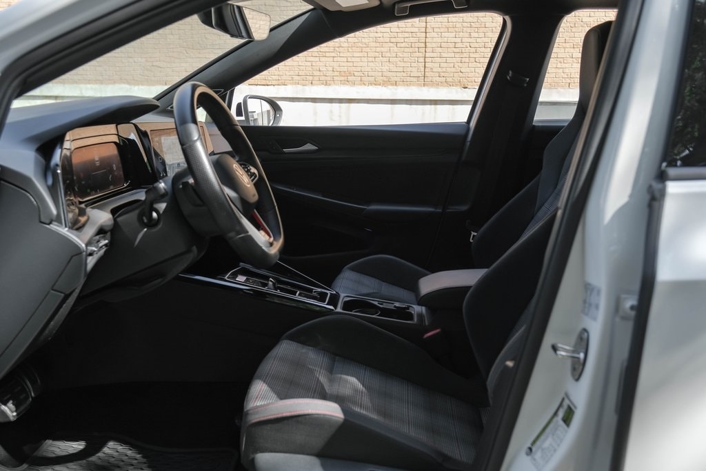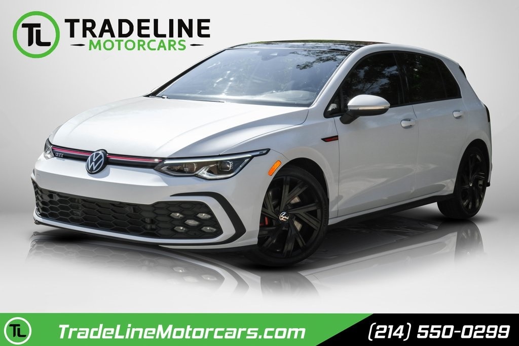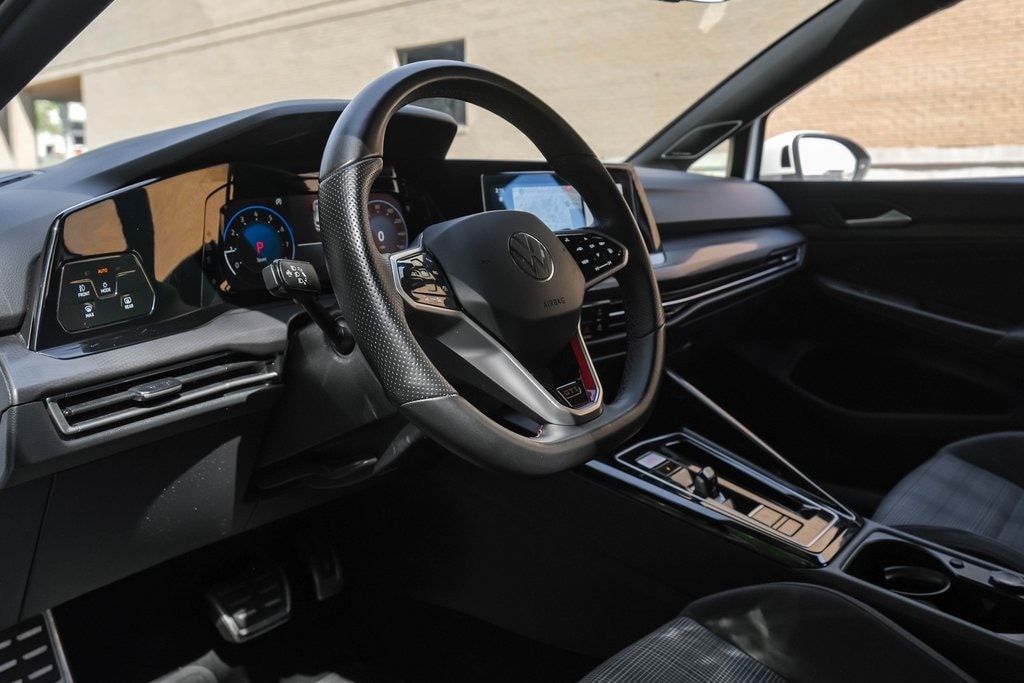 Opal White 2023 Volkswagen Golf GTI 2.0T SE Black Wheel Package, $37,771 ORIGINAL MSRP!!! FWD 7-Speed DSG Automatic with Tiptronic 2.0L TSI DOHC Black Wheel Package, Wheels: 18" Black Painted Alloy. Black Wheel Package (Wheels: 18" Black Painted Alloy), 4-Wheel Disc Brakes, 9 Speakers, ABS brakes, Air Conditioning, Alloy wheels, AM/FM radio: SiriusXM with 360L, Auto-dimming Rear-View mirror, Auto-Dimming Rearview Mirror w/HomeLink (DISC), Automatic temperature control, Brake assist, Bumpers: body-color, Cloth Seating Surfaces, Compass, Delay-off headlights, Driver door bin, Driver vanity mirror, Dual front impact airbags, Dual front side impact airbags, Electronic Stability Control, Emergency communication system: VW Car-Net Safe & Secure 5-year, Exterior Parking Camera Rear, Forward collision: FCW w/Autonomous Emergency Braking mitigation, Four wheel independent suspension, Front anti-roll bar, Front Bucket Seats, Front Center Armrest, Front fog lights, Front reading lights, Fully automatic headlights, harman/kardon® Speakers, Heated door mirrors, Heated front seats, Heated Front Top Sport Seats, Heated steering wheel, Illuminated entry, Lane Departure Warning System, Leather steering wheel, Low tire pressure warning, Luggage Net, Navigation System, Occupant sensing airbag, Outside temperature display, Overhead airbag, Overhead console, Panic alarm, Passenger door bin, Passenger vanity mirror, Power door mirrors, Power driver seat, Power moonroof: Panoramic, Power passenger seat, Power steering, Power windows, Radio data system, Radio: MIB3 Discover Pro w/10" Touchscreen Navi, Rain sensing wipers, Rear anti-roll bar, Rear reading lights, Rear seat center armrest, Rear window defroster, Rear window wiper, Remote keyless entry, Roadside Assistance Kit, Rubber Mats Kit, Security system, Speed control, Speed-sensing steering, Speed-Sensitive Wipers, Split folding rear seat, Spoiler, Sport steering wheel, Steering wheel mounted audio controls, Tachometer, Telescoping steering wheel, Tilt steering wheel, Traction control, Trip computer, Turn signal indicator mirrors, Variably intermittent wipers, and Wheels: 18" 2-Tone Machined Alloy.